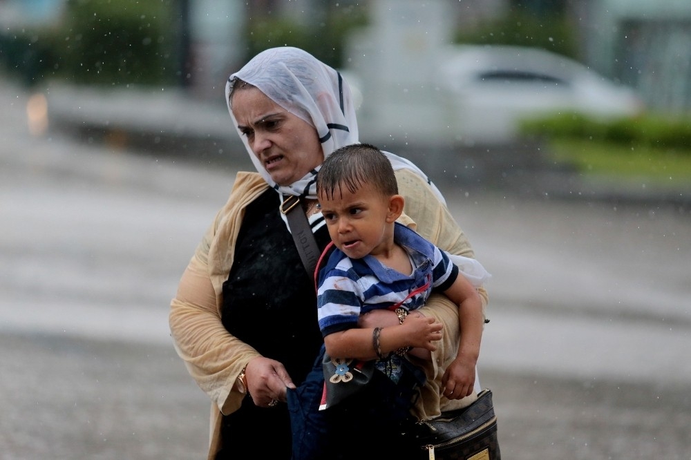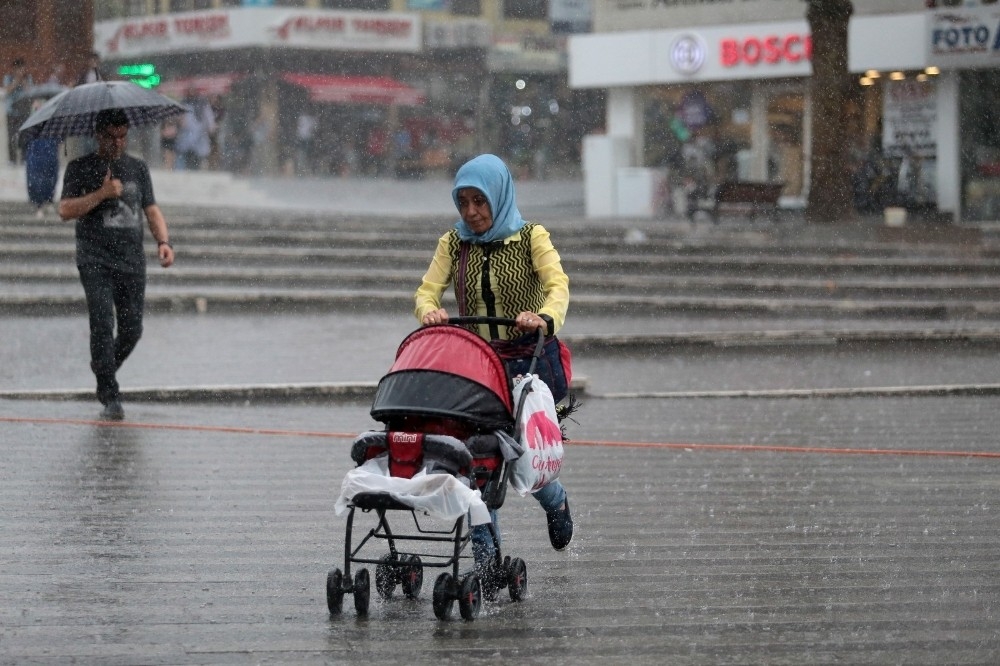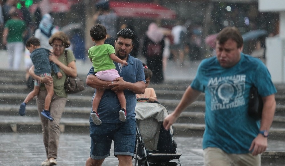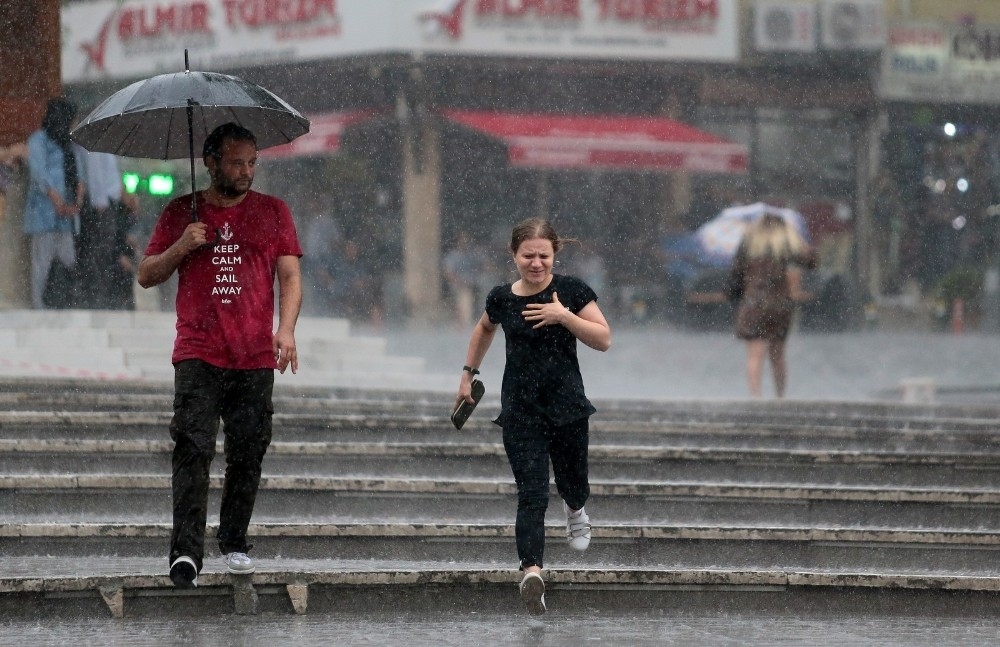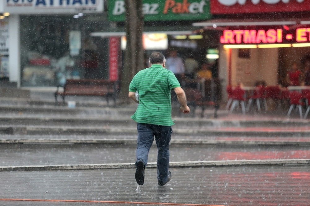 Bursa’da aniden bastıran sağanak yağış vatandaşlara zor anlar yaşattı. Kimileri ıslanmamak için saçak altlarına saklanırken, kimileri ise yağmurun tadını ıslanmalarına aldırış etmeden yürüyerek çıkardı. Kaynak: Aniden bastıran sağanak zor anlar yaşattı