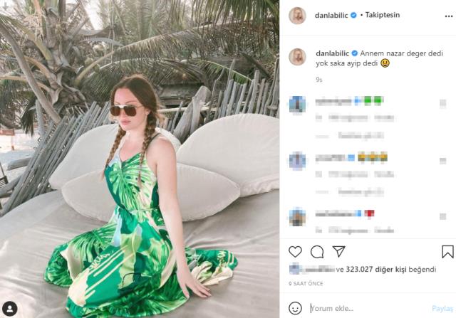 - ÖNCE PAYLAŞTI SONRA SİLDİ… Instagram’da 5,7 milyon takipçisi bulunan Danla, yaklaşık dört aydır birlikte olduğu ekonomist Poyraz Teoman’la hamakta kucak kucağa verdikleri pozu paylaştı. Annesinden veto yiyen Bilic, paylaşımını kısa sürede sildi. Sadece kendi fotoğrafını paylaşan fenomen, “Annem ‘nazar değer’ dedi. Yok şaka ‘ayıp’ dedi” notunu yazdı. (haberler.com)