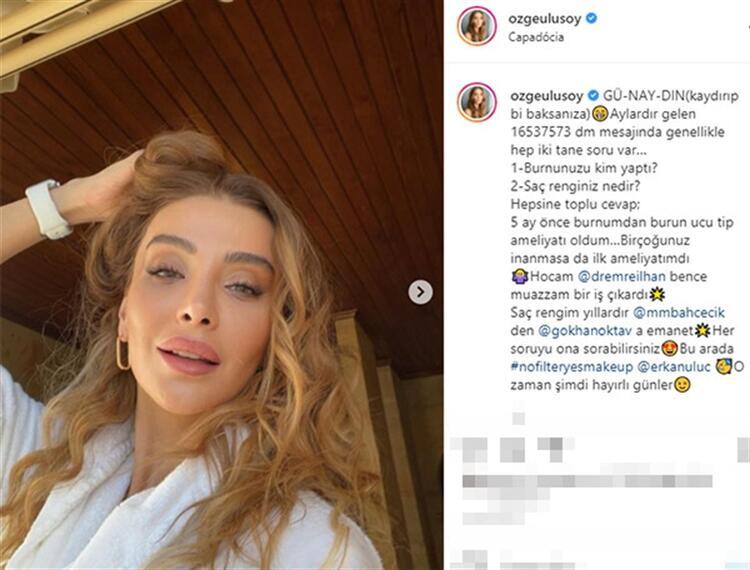 - “BİRÇOĞUNUZ İNANMASA DA…” Yaklaşık bir yıldır iş insanı Faruk Çolakoğlu ile aşk yaşayan Özge Ulusoy, 27 Mayıs’ta yaptığı paylaşımda, beş ay önce ameliyat masasına yattığını, burnundan estetik operasyon geçirdiğini açıklamıştı.