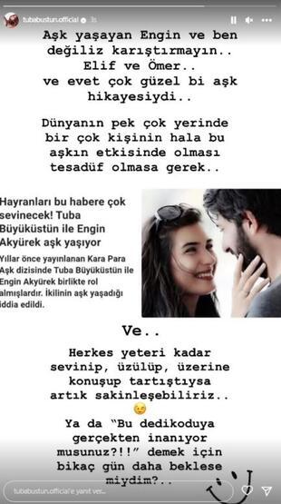- Basına yansıyan aşk haberlerinin ardından ilk açıklama Tuba Büyüküstün’den geldi.