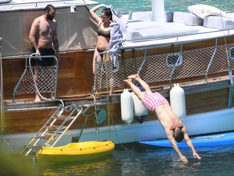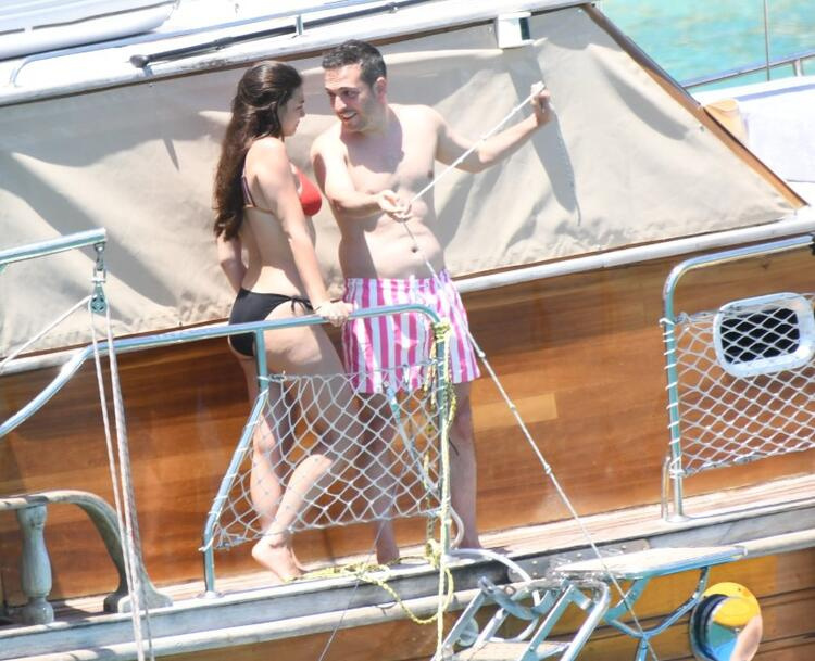 - Bekiroğlu ile müzisyen sevgilisi teknenin merdivenlerden denize girmeyi tercih ederken Demet Özdemir ve Oğuzhan Koç ise suya atladı.