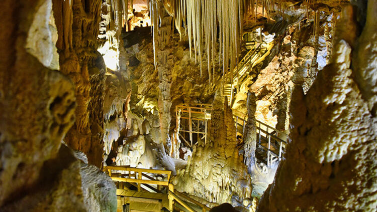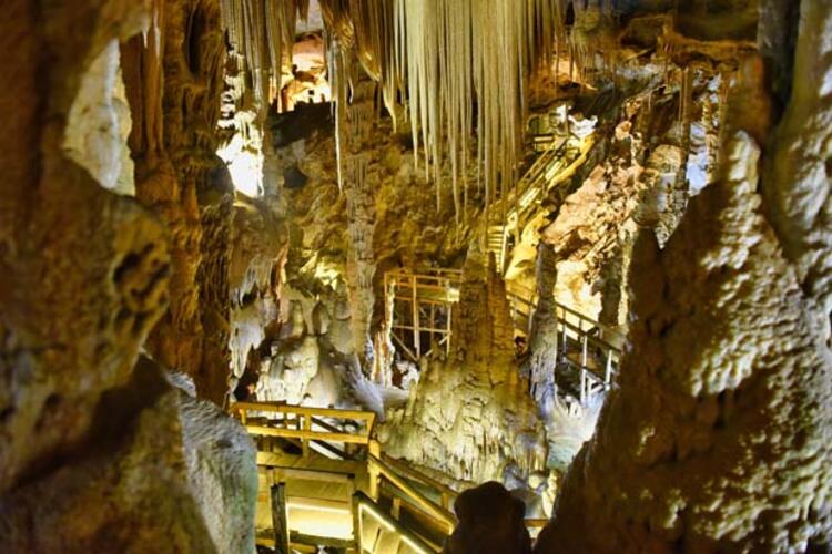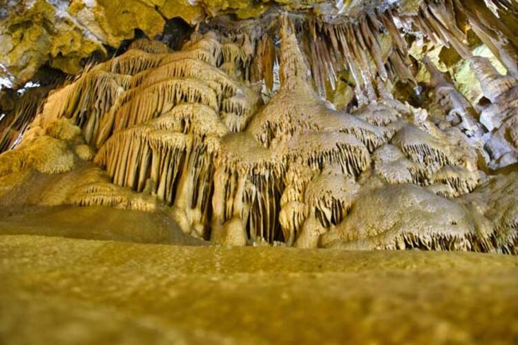 - Mağaranın içerisinde sarkıt, dikit, sütun, org desenli duvarlar, bayrak şekilleri, perde damlataşları, mağara çiçekleri, mağara incileri, fil kulakları, traverten havuzları, traverten basamakları ve mağara gülleri yer alıyor. (İHA)