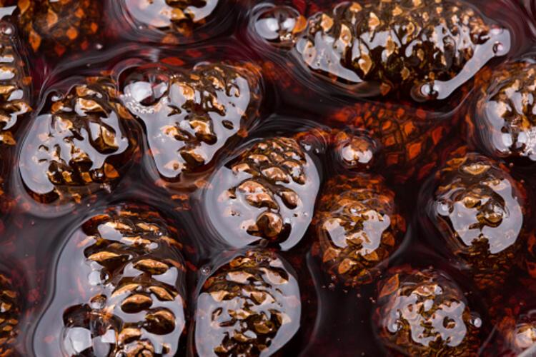 - Bir gün sonunda kozalaklar durulanır ve kurutulur. Ardından çekiç ya da benzer bir araçla kozalaklar tek tek kırılır ve içi açılır. Bu şekilde içi açılan ve ezilen çam kozalakları 8 saat boyunca kaynatılır.