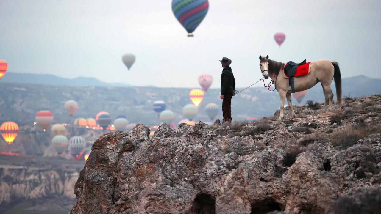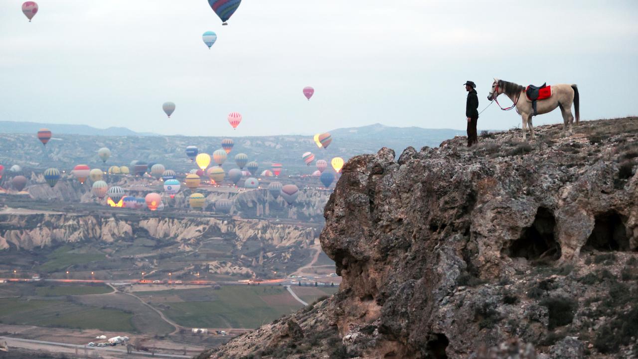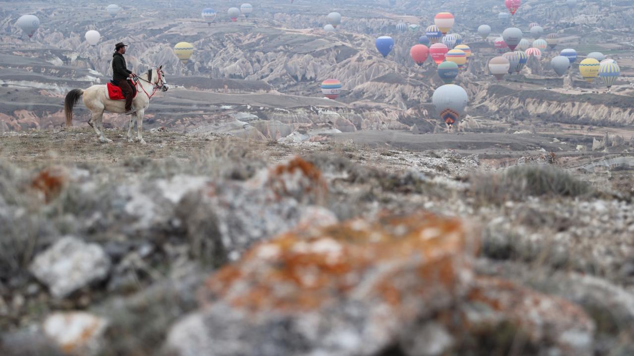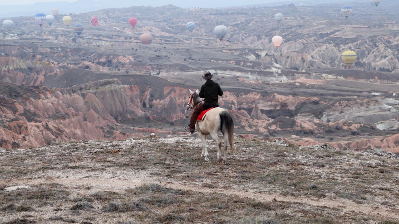 - Kapadokya`yı at sırtında en iyi gün doğumunda keşfettiğini anlatan Poyraz, “Kapadokya`nın tarihi ve doğal yapısını, sessizliğini gün doğumunda daha rahat hissedebiliyor, görebiliyorsunuz. Aktepe dediğimiz mevki var, oraya çıkıyorum. Daha çok tepe ve uç noktalara, kimsenin ayak basmadığı yerlere çıkıp balonları tepe noktalardan izliyorum” dedi.