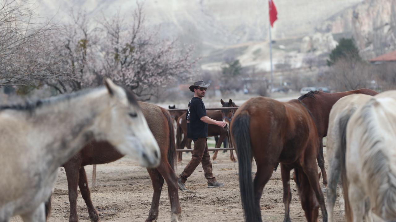 - Poyraz, Nevşehir`in Göreme beldesindeki çiftlikte her sabah atların bakımını yaparak güne başlıyor.
