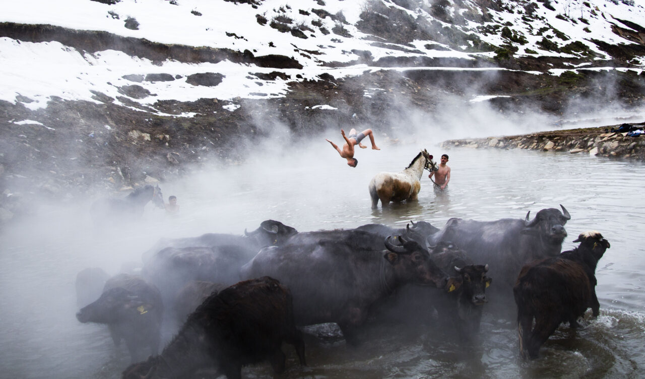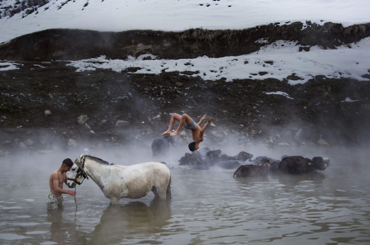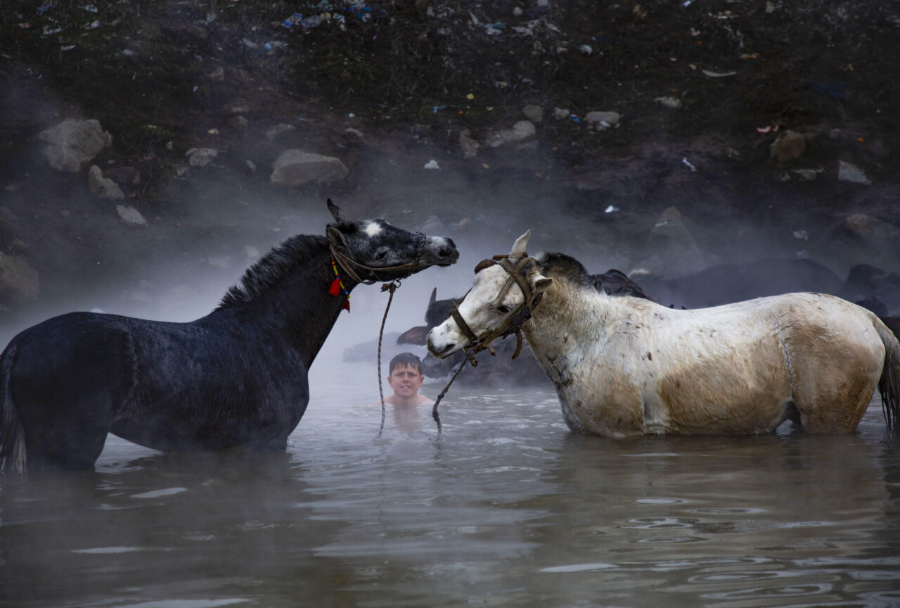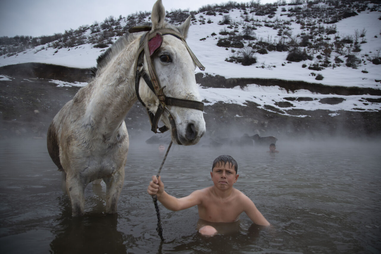 Atlar ve mandalarla kaplıca keyfi! Burası Türkiye’de nerede? Bitlis’in Güroymak ilçesine bağlı Budaklı köyünde besiciler, kış aylarında ahırlarda kalan manda ve atlarını yüksek sıcaklıktaki kaplıca suyunda yıkayarak temizliyor.