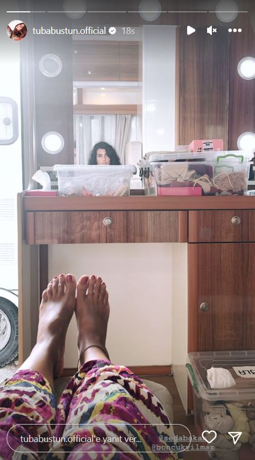 - Set arasında kendi özel karavanında dinlendiği anları yayınlayan Büyüküstün, ayaklarını paylaştı. Takipçileri güzel oyuncunun ayaklarına yorum yağdırdı.