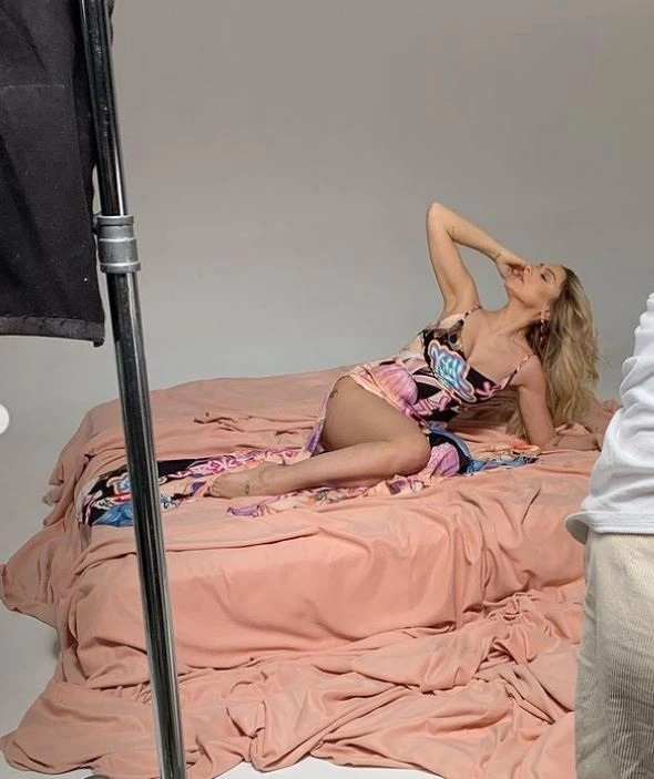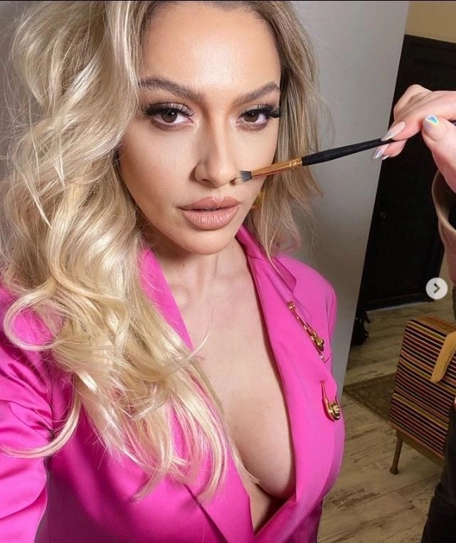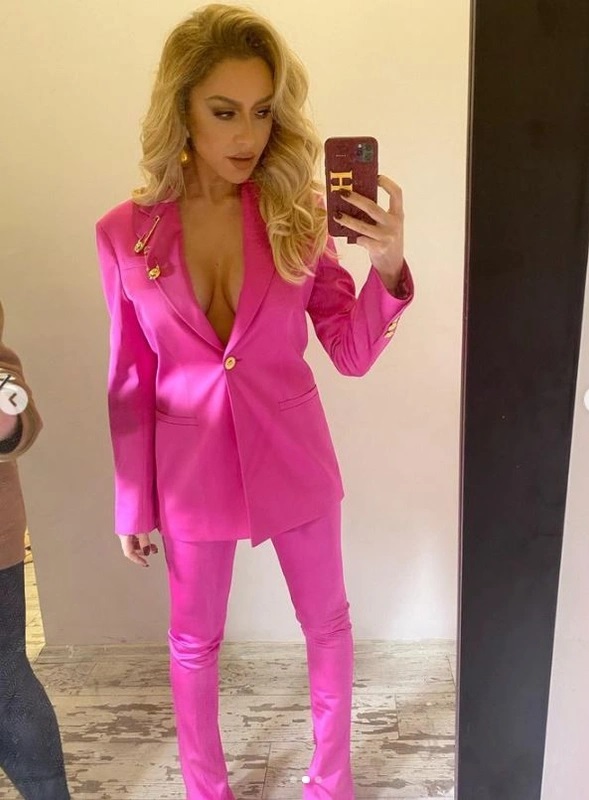 - Göğüs dekolteli pembe takım giyen Hadise’nin boydan çekildiği fotoğrafta bir tuhaflık vardı.