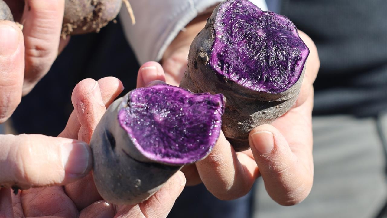 - Karbonhidrat, potasyum, C vitamini, folik asit ve demir kaynağı olan mor patatesin ilk hasadı tamamlandı.