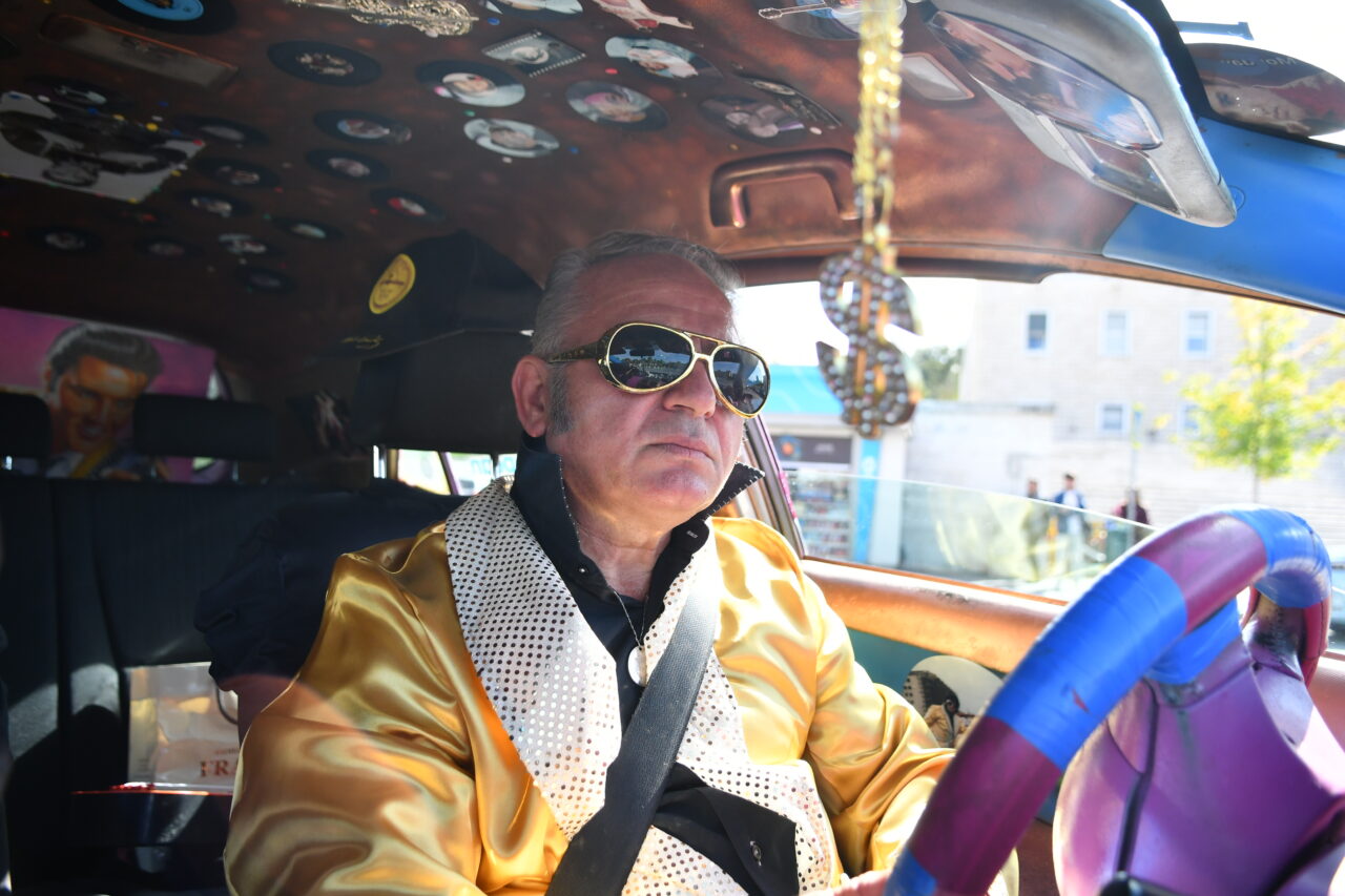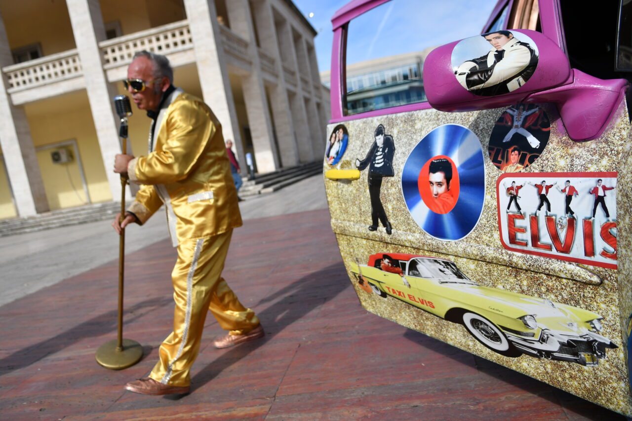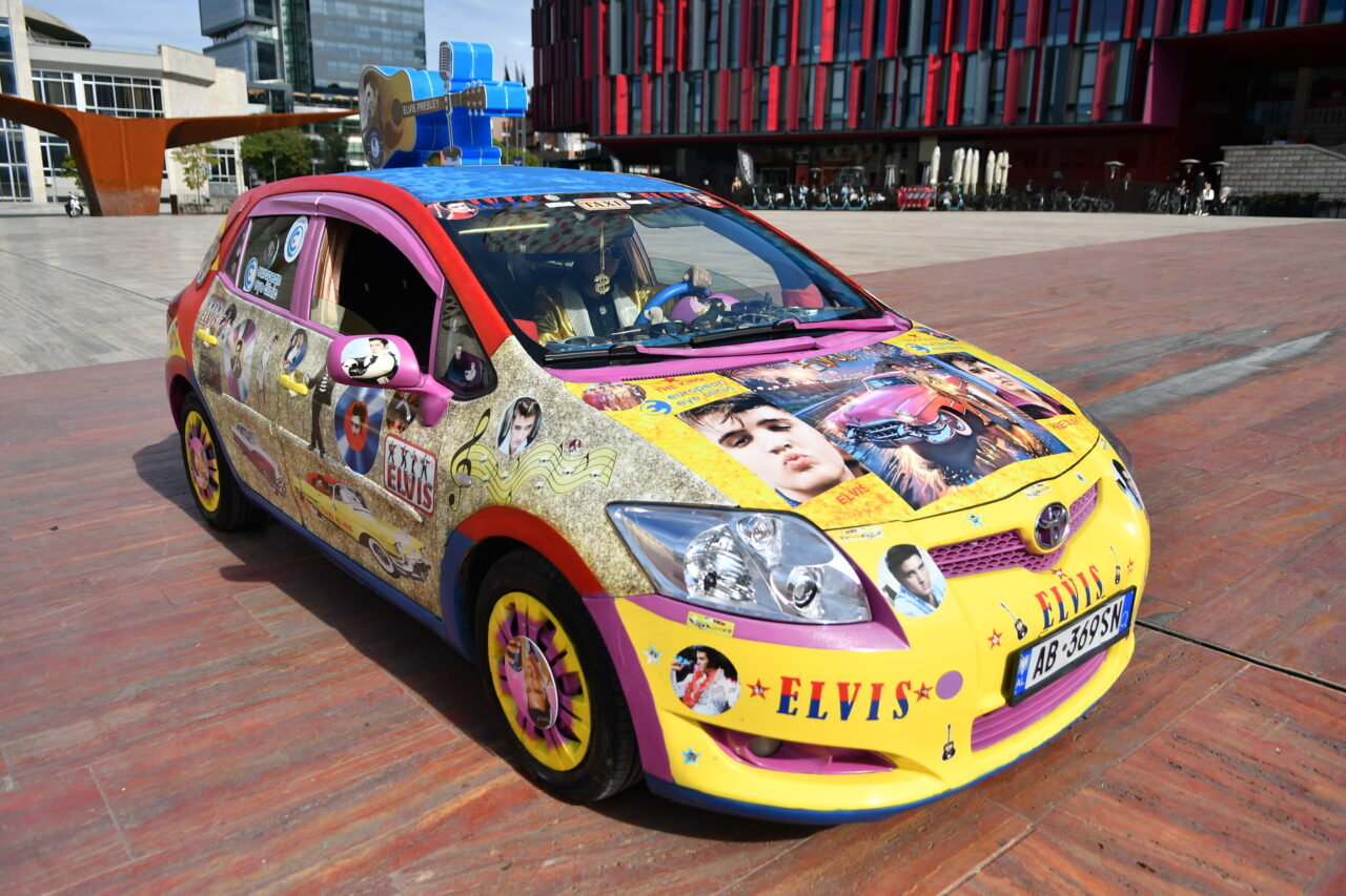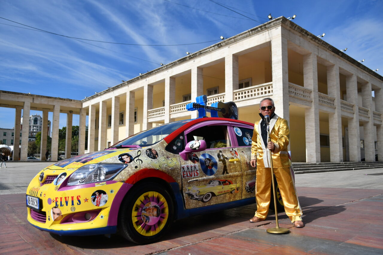 Beden Eğitimi öğretmenliğinden, Elvis Presley tarzı taksi şoförlüğüne Arnavutluk’un başkenti Tiran’da taksi şoförlüğü yapan 57 yaşındaki Arjan Kumrija, Elvis Presley tarzıyla dikkat çekiyor.