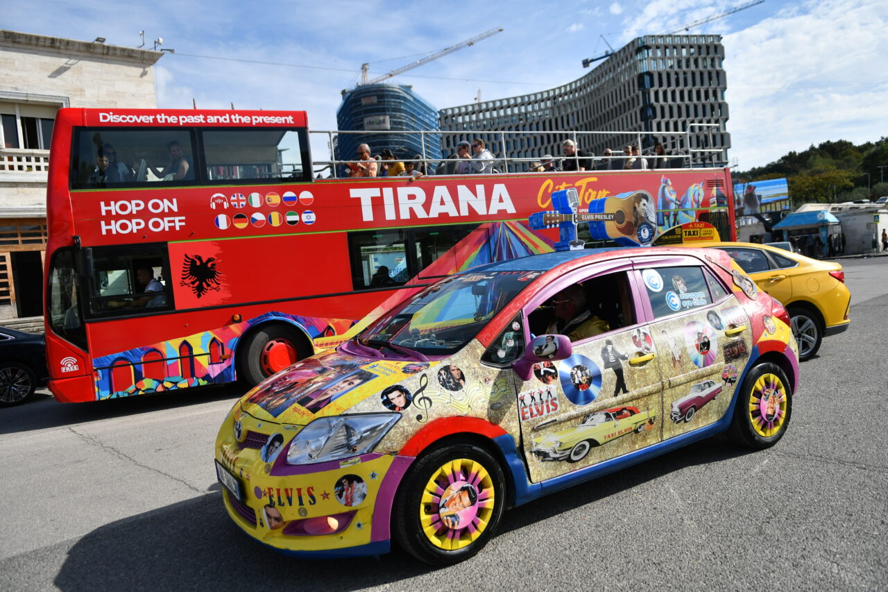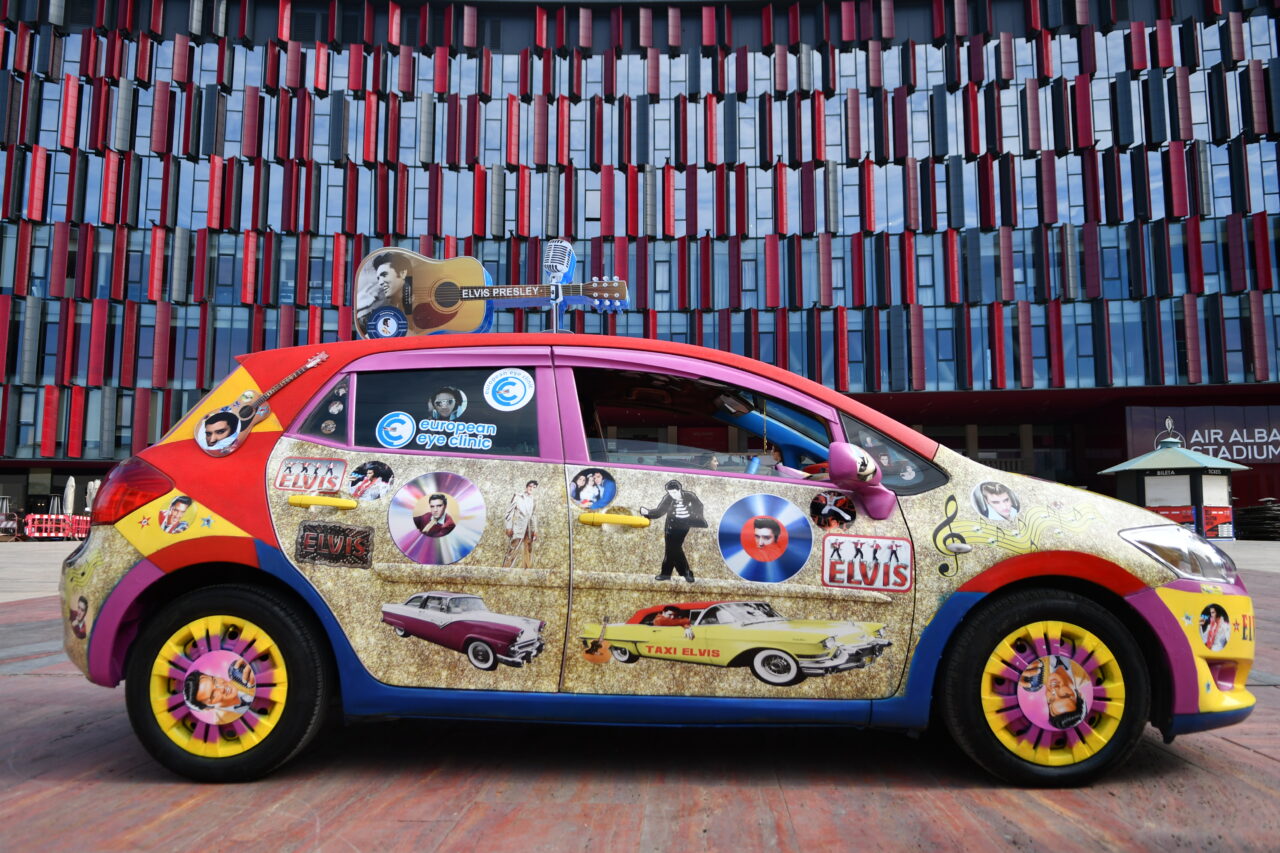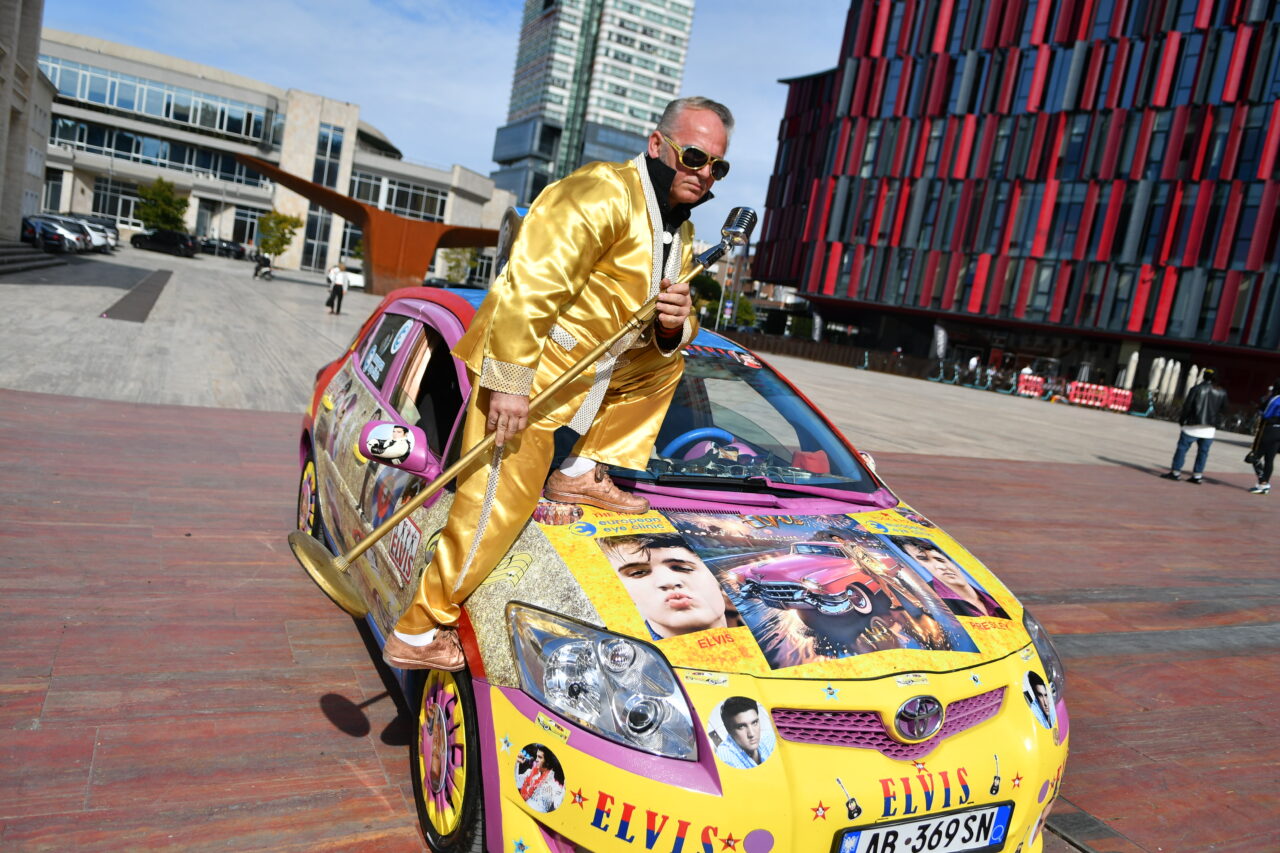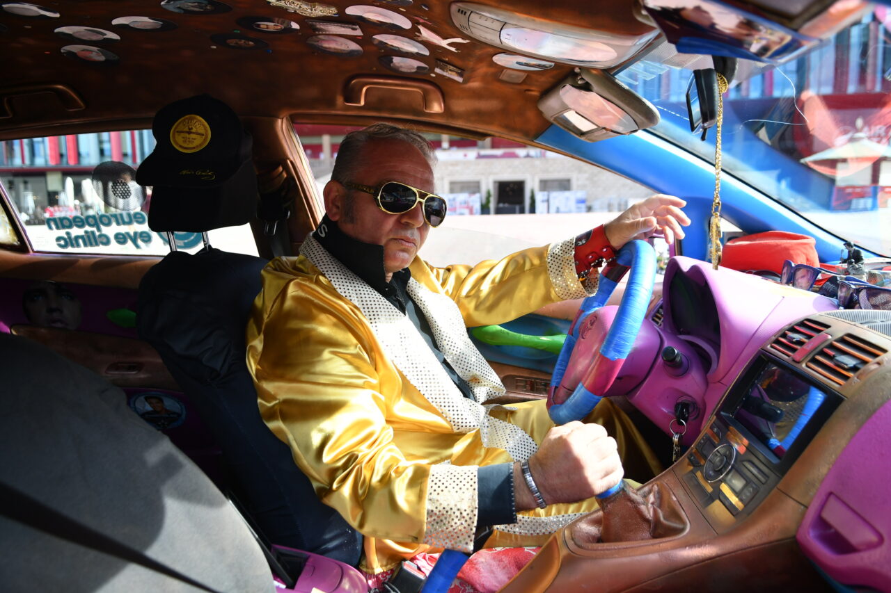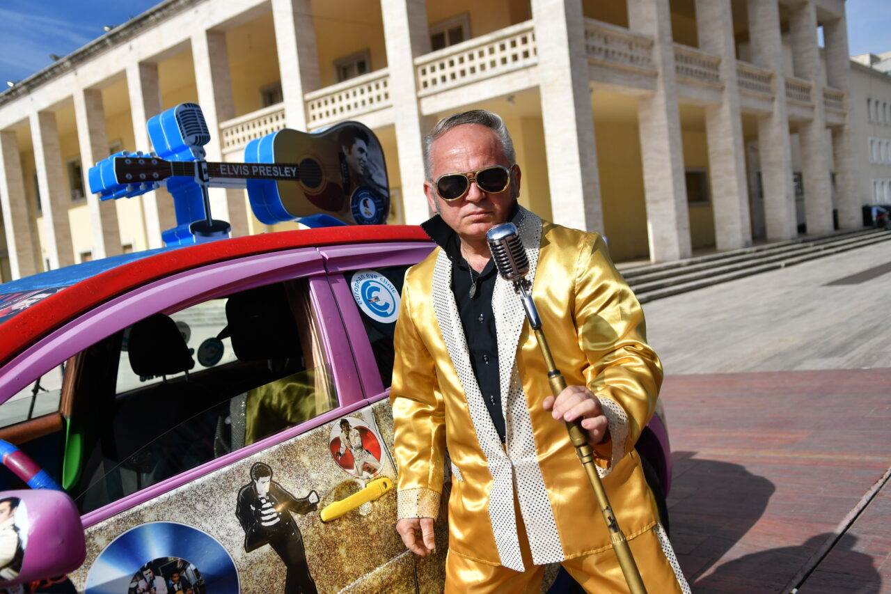 Beden Eğitimi öğretmenliğinden, Elvis Presley tarzı taksi şoförlüğüne Arnavutluk’un başkenti Tiran’da taksi şoförlüğü yapan 57 yaşındaki Arjan Kumrija, Elvis Presley tarzıyla dikkat çekiyor.