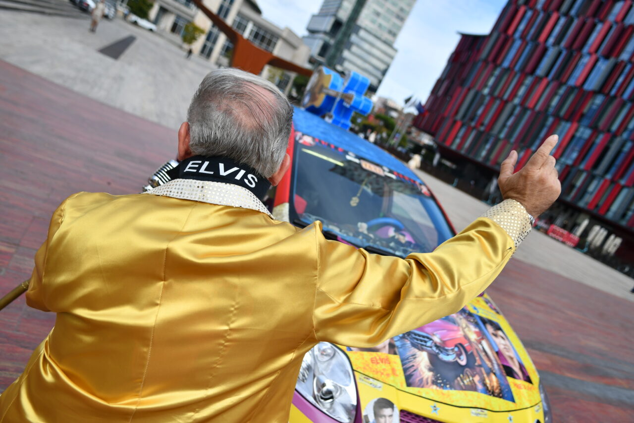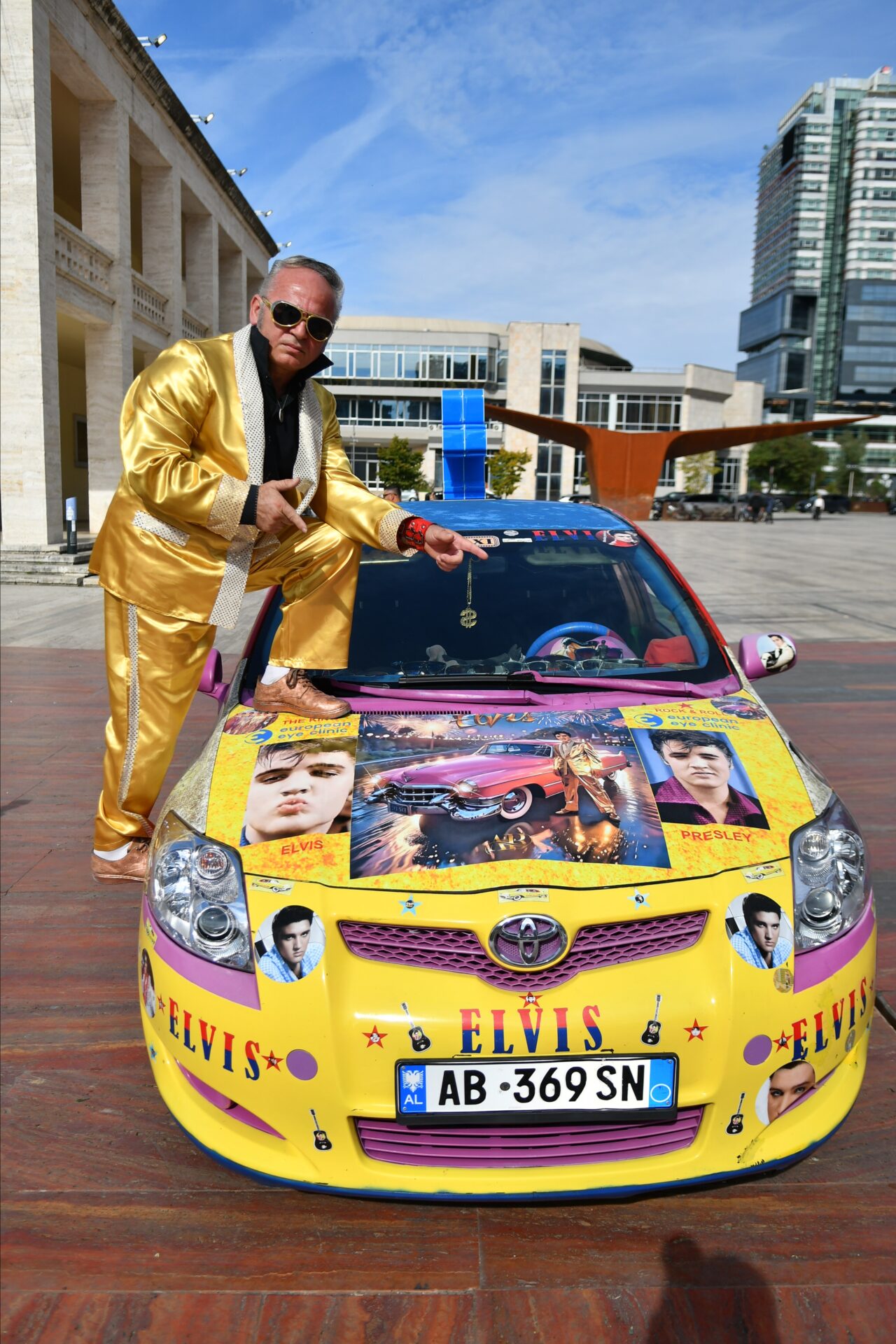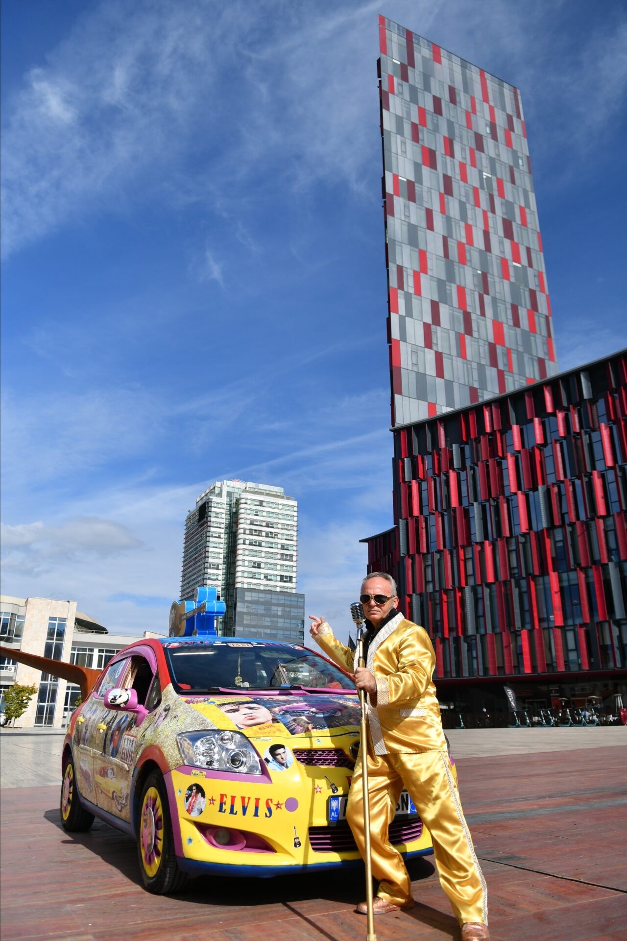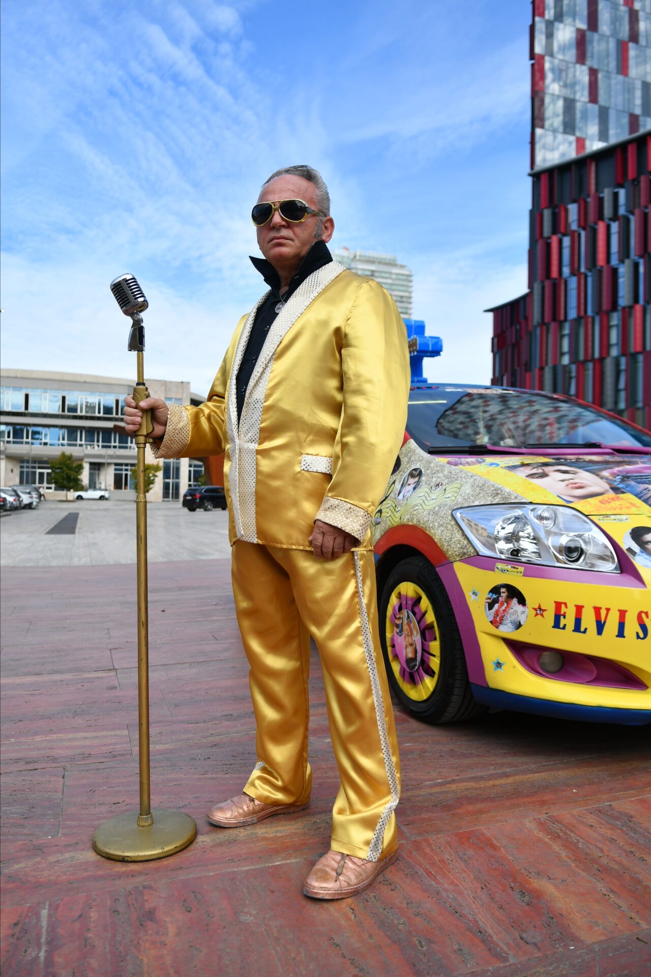 Beden Eğitimi öğretmenliğinden, Elvis Presley tarzı taksi şoförlüğüne Arnavutluk’un başkenti Tiran’da taksi şoförlüğü yapan 57 yaşındaki Arjan Kumrija, Elvis Presley tarzıyla dikkat çekiyor.
