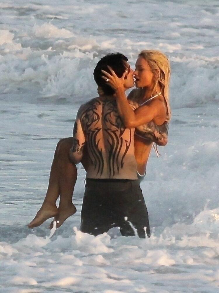 - Oyuncular, hafta sonu Kaliforniya, Ventura County’deki Oxnard State Beach Park’ta çekim yaparken okyanusta tutkuyla öpüşürken görüldü.