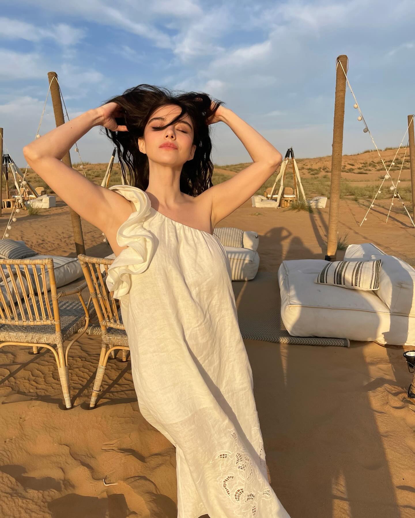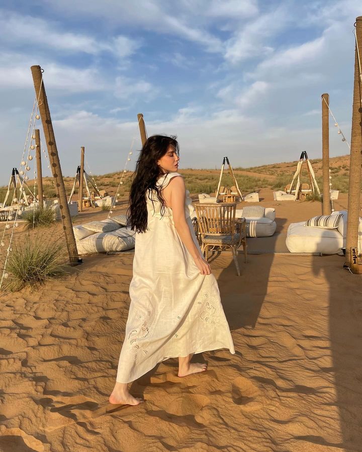 - Mutlu bir evliliği olan Gürel son olarak Instagram hesabından beyaz elbisesiyle çölde çektiği pozlarını paylaştı.