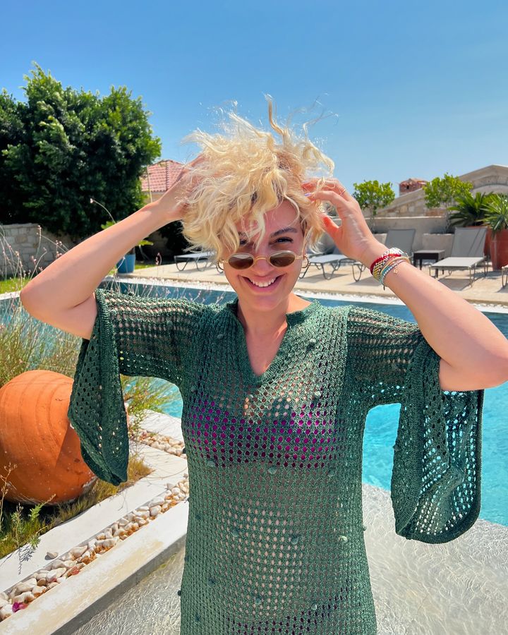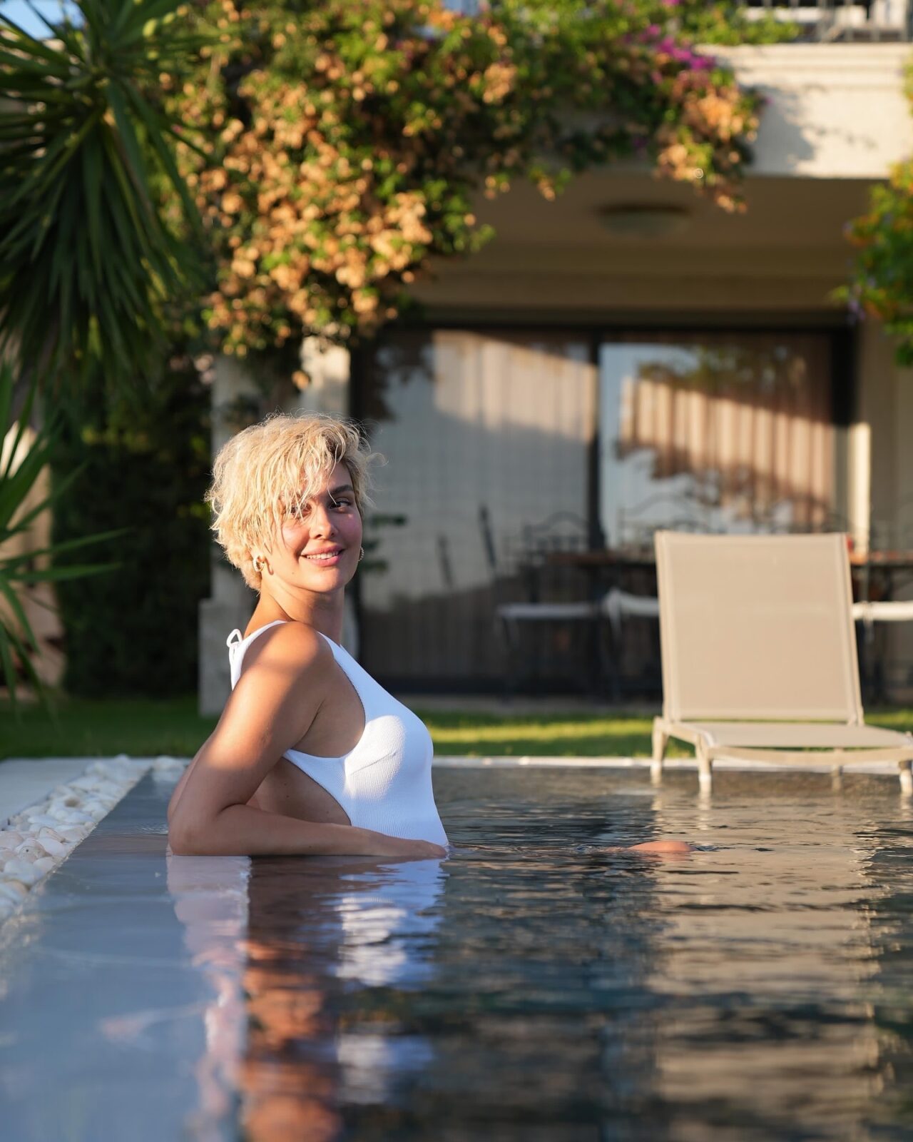 - Beyaz mayosu ile havuz başında verdiği pozları takipçileriyle paylaştı.