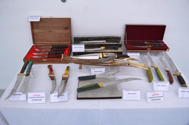 ‘Bıçak şehri’ olarak bilinen Bursa’da Tayyare Kültür Merkezi, Büyükşehir Belediyesi Bursa Bıçakçılar Derneği tarafından bu yıl beşincisi düzenlenen ‘Bursa Bıçakları Tasarım Yarışması’nda dereceye giren ustaların eserlerine ev sahipliği yapıyor.