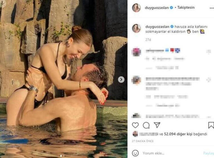 - HAVUZDA SARMAŞ DOLAŞ POZ VERDİLER… Geçtiğimiz haftalarda da bir süredir aşk yaşadığı basketbolcu Can Maxim Mutaf ve arkadaşlarıyla tatile çıkan Özaslan, sevgilisiyle havuzda verdiği sarmaş dolaş pozları takipçilerinin beğenisine sunmuştu. Ünlü fenomen paylaşımına; “Havuza asla kafasını sokmayanlar el kaldırsın” notunu düşmüştü.