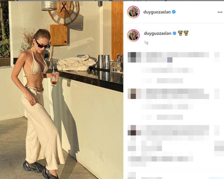 - Tatilde olan Duygu Özaslan bu güzel haberi paylaştıktan sonra bikinili pozlarını da takipçileriyle paylaşmaya devam ediyor.