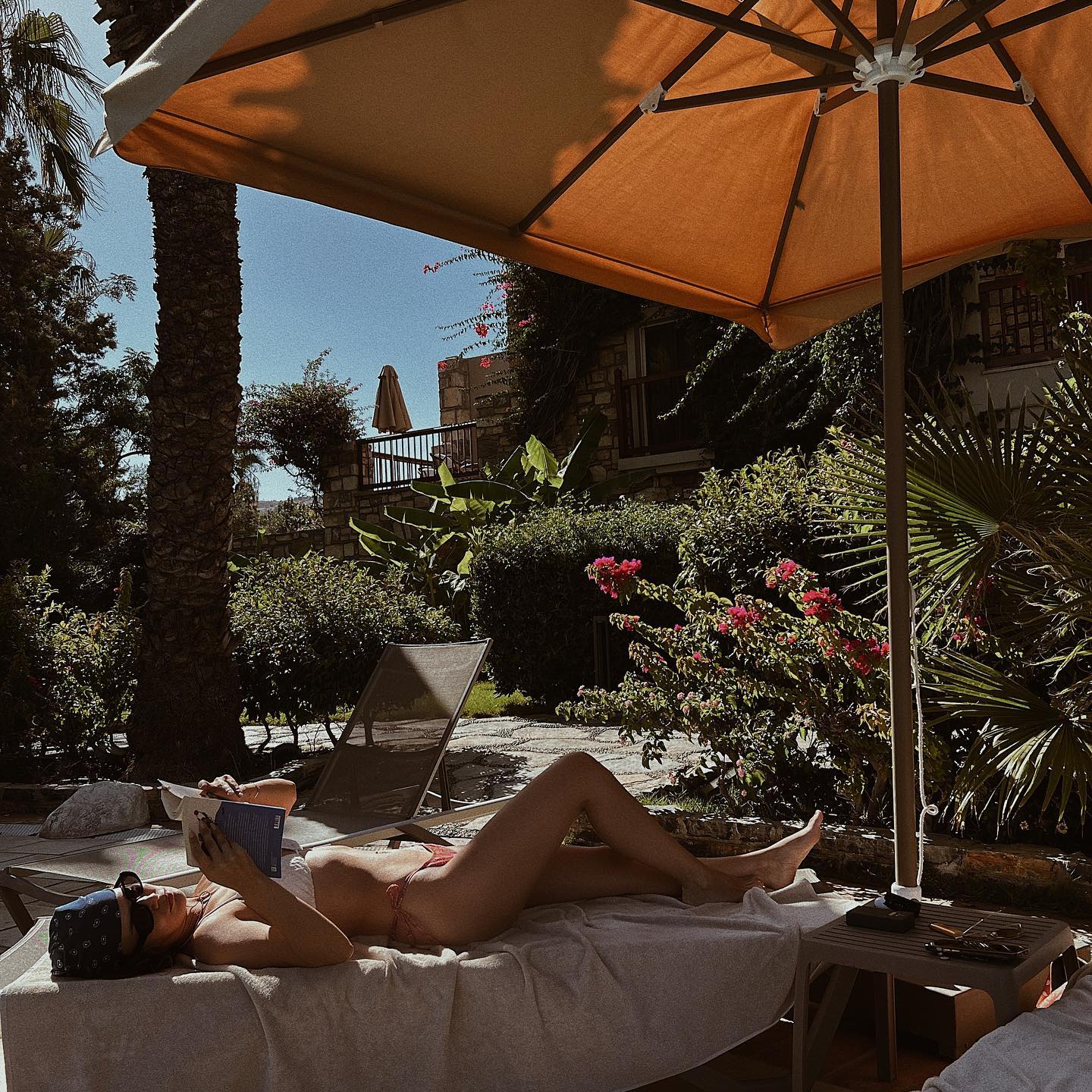 - Kaya, sere serpe uzanarak bikinili poz verdi.