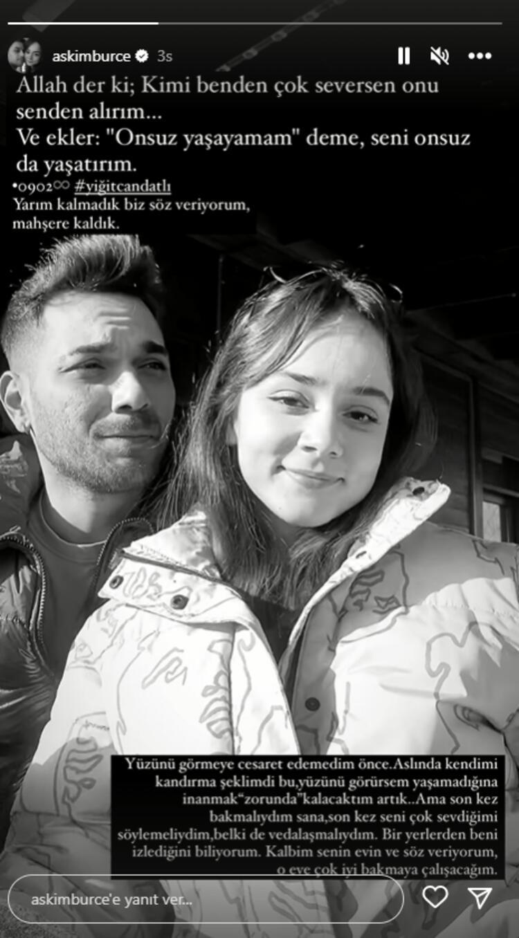 - Aşkım Burçe, sevgilisine Instagram sayfasında yaptığı paylaşımlarla veda etti: Daha çok planımız vardı. Yapacak bir sürü şeyimiz vardı. Çok gülecektik, çok kavga edecektik. Şimdi sesine bile hasret mi bırakacaksın beni Datlım? Başka bir yer varsa orada tekrar görüşürüz belki. Yoksa da, seni tanımak benim cennetimdi zaten…