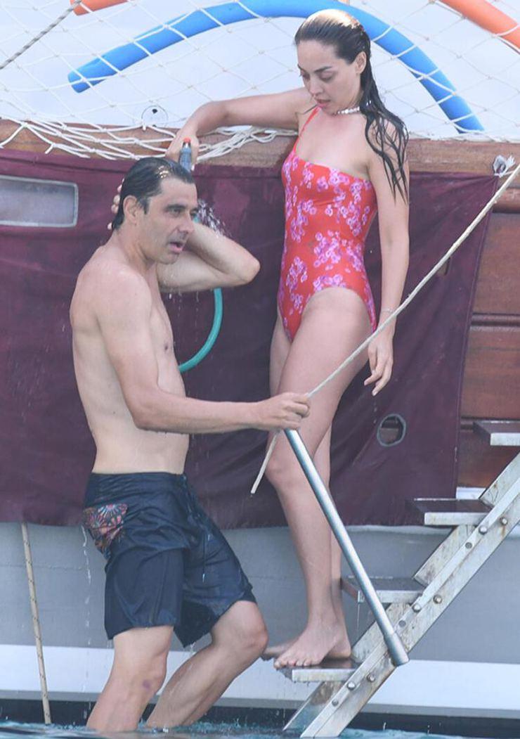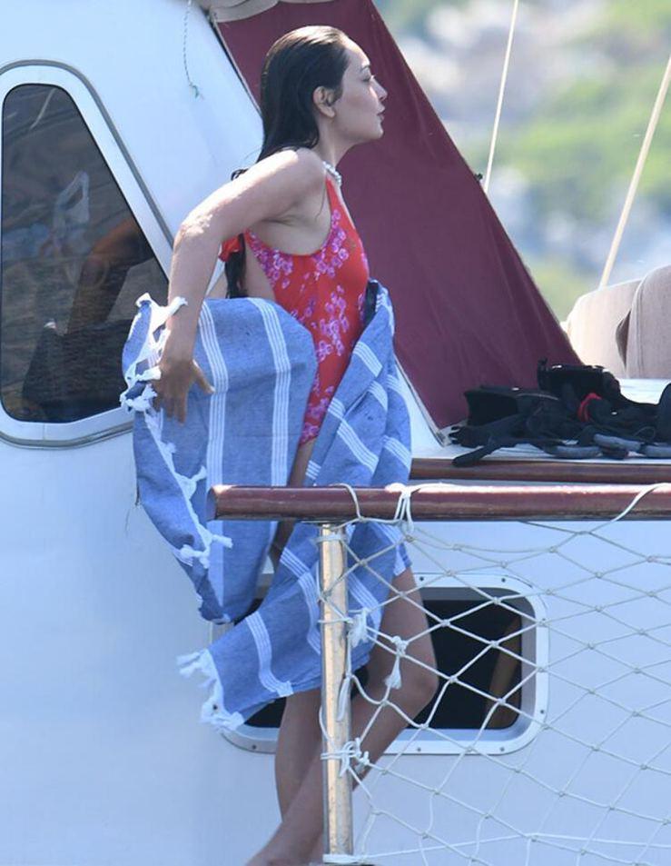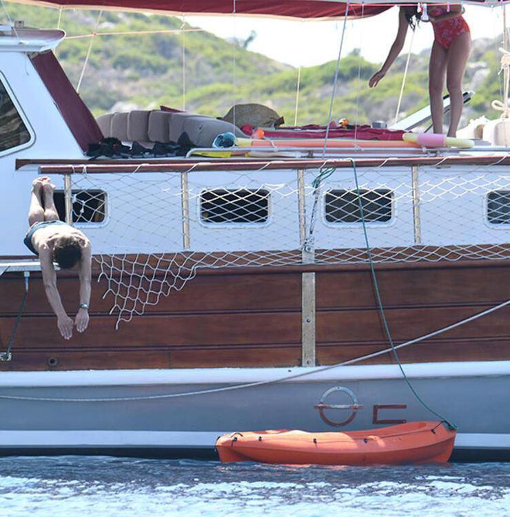 - Eşine elleriyle güneş kremi süren Cansel Elçin, sonrasında teknenin merdivenlerinden balıklama atladı.
