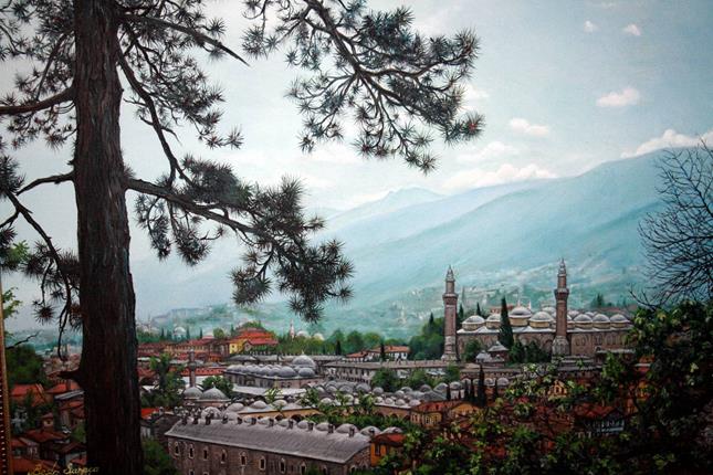 Bursa Ördekli Kültür Merkezi’nde açılan ‘Gümüşlük’ten Bursa’ya Tablolar’ sergisinde Beşir Sarpça’nın çizdiği bir birinden güzel yağlı boya tablolar yer alı