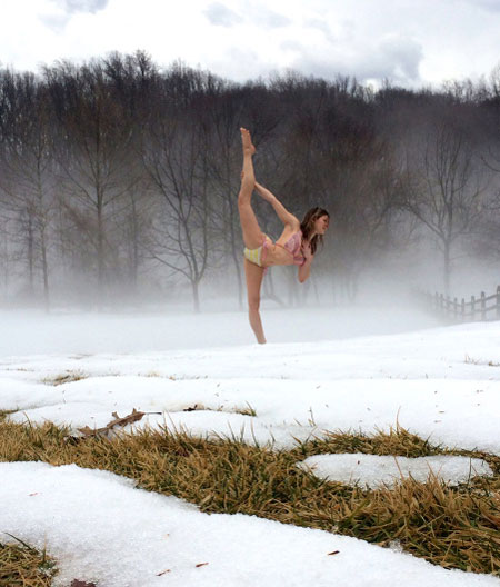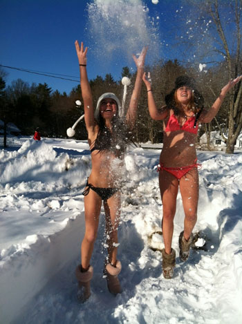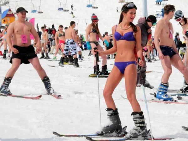 Buz gibi havada insanlar kat kat giyinirken onlar bikini ile karın tadını çıkardı.Soğuk havada bikini ile kayan kızlar ilginç görüntüler oluşturdu. İşte o birbirinden renkli kareler