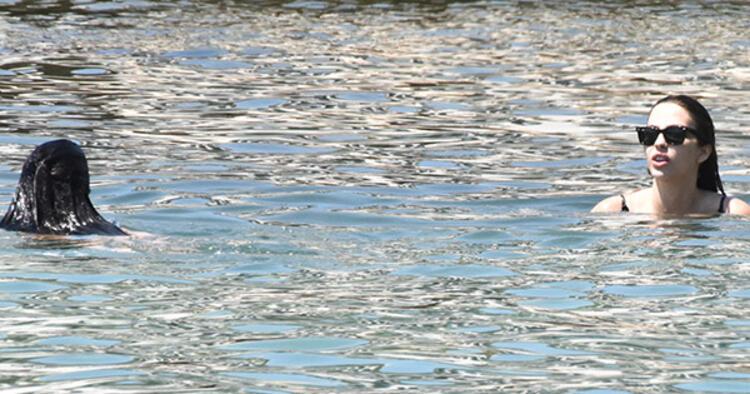 - Öğle saatlerinde iskeleye gelen Şefkatli, önce suyun sıcaklığını kontrol etti, daha sonra denize girmek yerine şezlonga uzanıp güneşlendi.