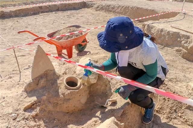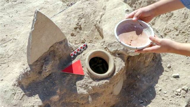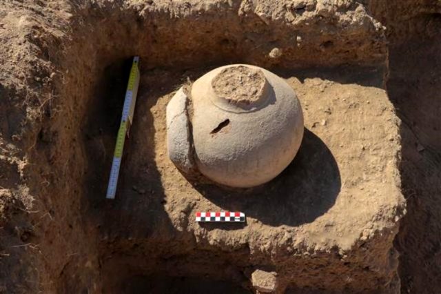 - “BU MEZAR ŞEKLİYLE İLK KEZ BURADA KARŞILAŞILDI” Daha önceki kazılarda dört farklı ölü gömme geleneğiyle karşılaştıklarını aktaran Çavuşoğlu, şunları kaydetti: “Burada sandık mezar, basit toprak mezar, örme mezar ve urne mezar mimarisi var. Dört çeşit bir mezar mimarisi var. Yönetici sınıfa ait olduğunu düşündüğümüz bir mezar geleneği daha bulduk. O da birden dörde kadar kum taşı levhalarından oluşan yeni bir mezar mimarisi ortaya çıktı. Bu mezar mimarisi hem inhumasyon hem de kremasyon (urne) mezar gömü biçiminde kullanılmış. Bu mezar şekliyle ilk kez burada karşılaşıldı. Urnenin başına dikili taş konulması da çok ilginç. Mezarın başına taş dikme geleneği, Urartu mezar mimarisinde de ilk defa karşılaştığımız bir durum. Ceset önce yakılıyor, arta kalan kemikler çömleğin içerisine bırakılıyor. Ardından bu alanda dini törenle gömülüyor.”