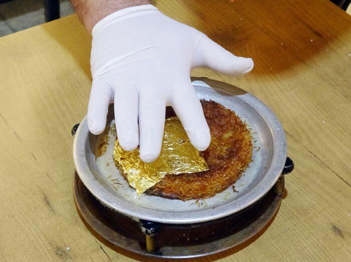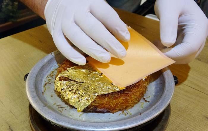 - Tel kadayıfın arasına konulan özel tuzsuz peyniriyle tereyağıyla kızartılan ve üzerine dökülen şerbetiyle eşsiz bir tada dönüşen Antakya künefesi, 24 ayar saf altın ile kaplandı. Helal gıda sertifikalı, yenilebilir altın ile kaplanan künefe dünyada ilk olma özelliği taşıyor. Altın kaplama künefenin şimdilik Hatay’da satışı yapılırken işletme sahibi Mustafa Karabay altının çok değerli olduğunu, Hatay için de değerli olan künefe ile birleştirerek künefeye değer kattıklarını söyledi.