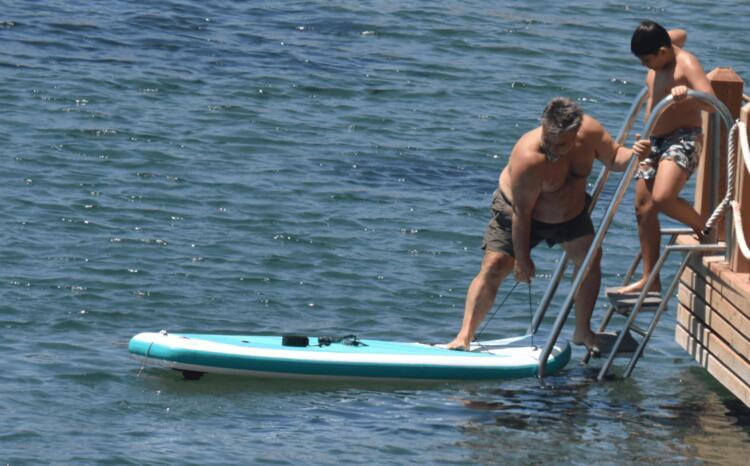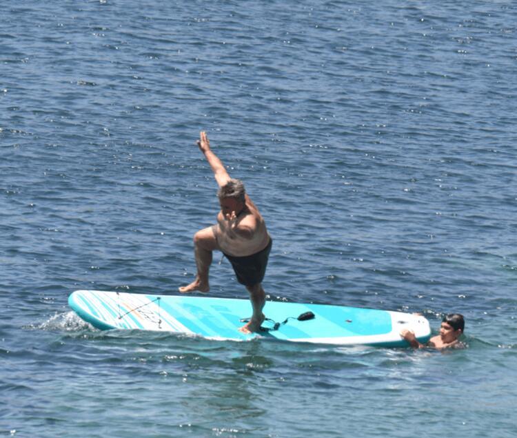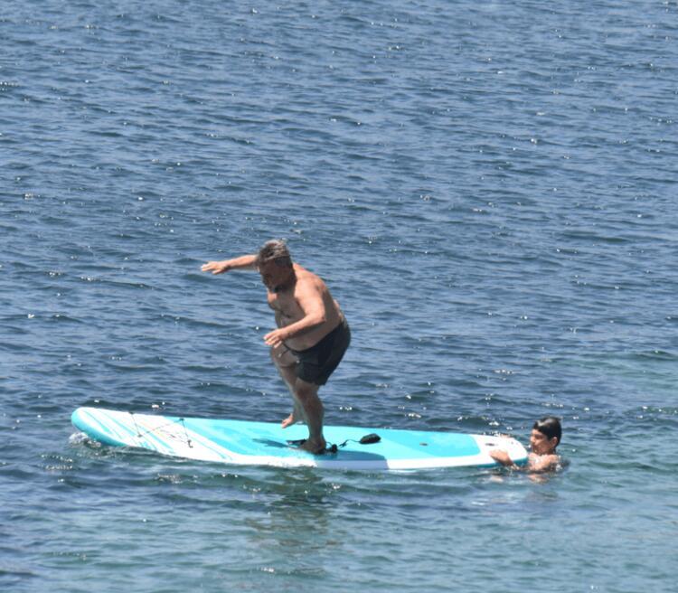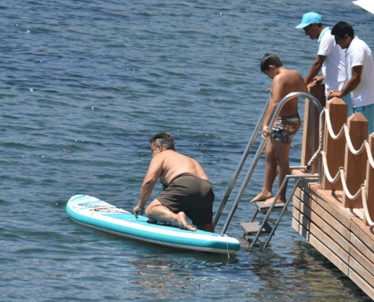 - Bülent Serttaş gençlere özenip ‘stand up paddle’ yapmak istedi. Ama ayakta duramadı.