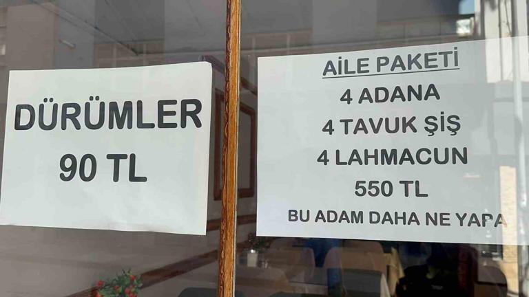 - Kebap ve lahmacun başta olmak üzere bütün ızgara çeşitleri üzerine yemek çıkaran işletmede, 4 adana, 4 tavuk şiş ve 4 lahmacun 550 liradan satılıyor.