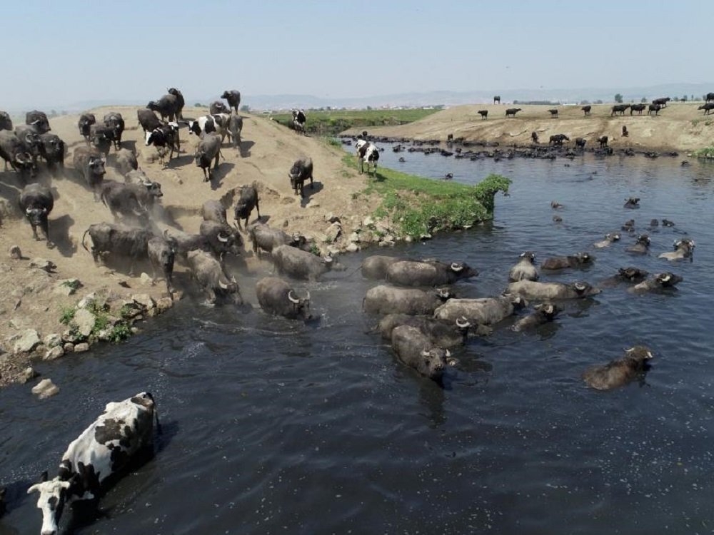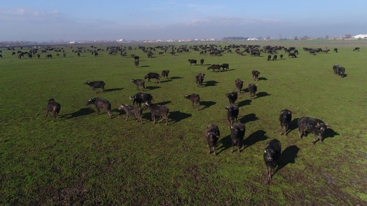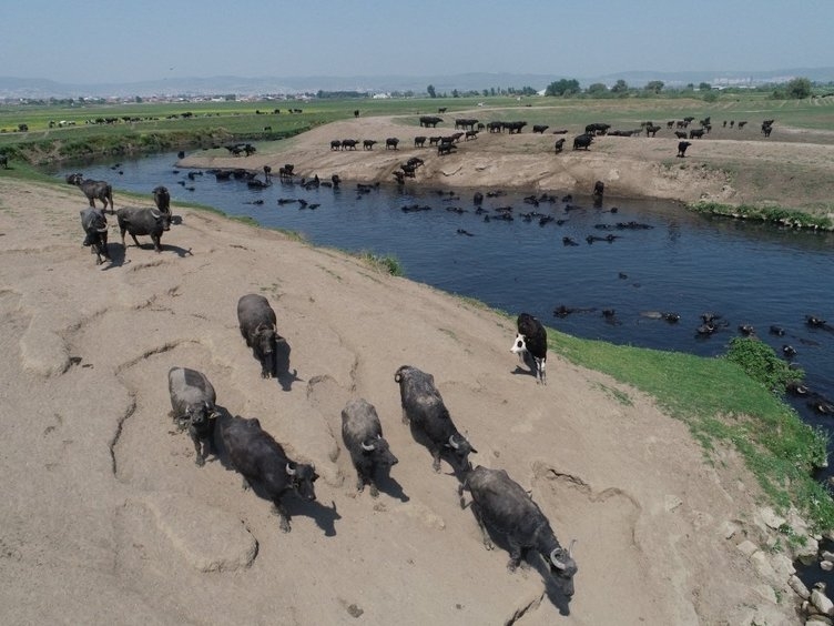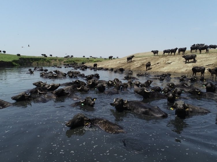 Balıkesir’in Altıeylül ilçesine bağlı kırsal Yakupköy mahallesi yakınlarındaki meralar, geniş düzlükleri, sulak alanları ve dereleri geçen manda sürülerinin görüntüleriyle ‘Afrika savanası’nı andırıyor.