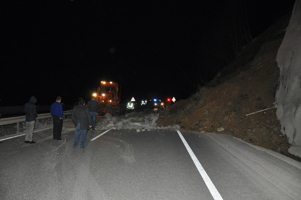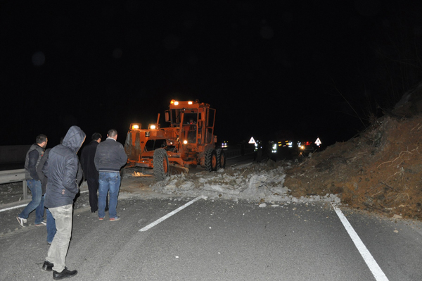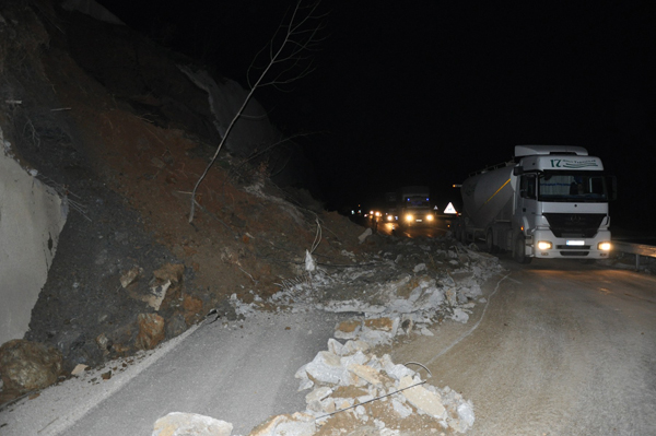 İnegöl’de meydana gelen toprak kayması nedeniyle Bursa-Ankara karayolu trafiğe kapandı. Ankara’dan İnegöl’e seyir halinde olan kamyon karayoluna düşen toprak ve kaya parçalarından kıl payı kurtuldu. Heyelan nedeniyle yolda uzun araç kuyruğu oluştu.