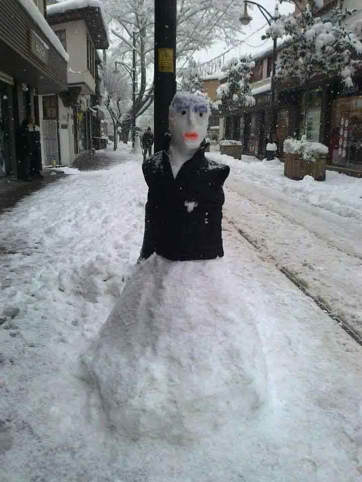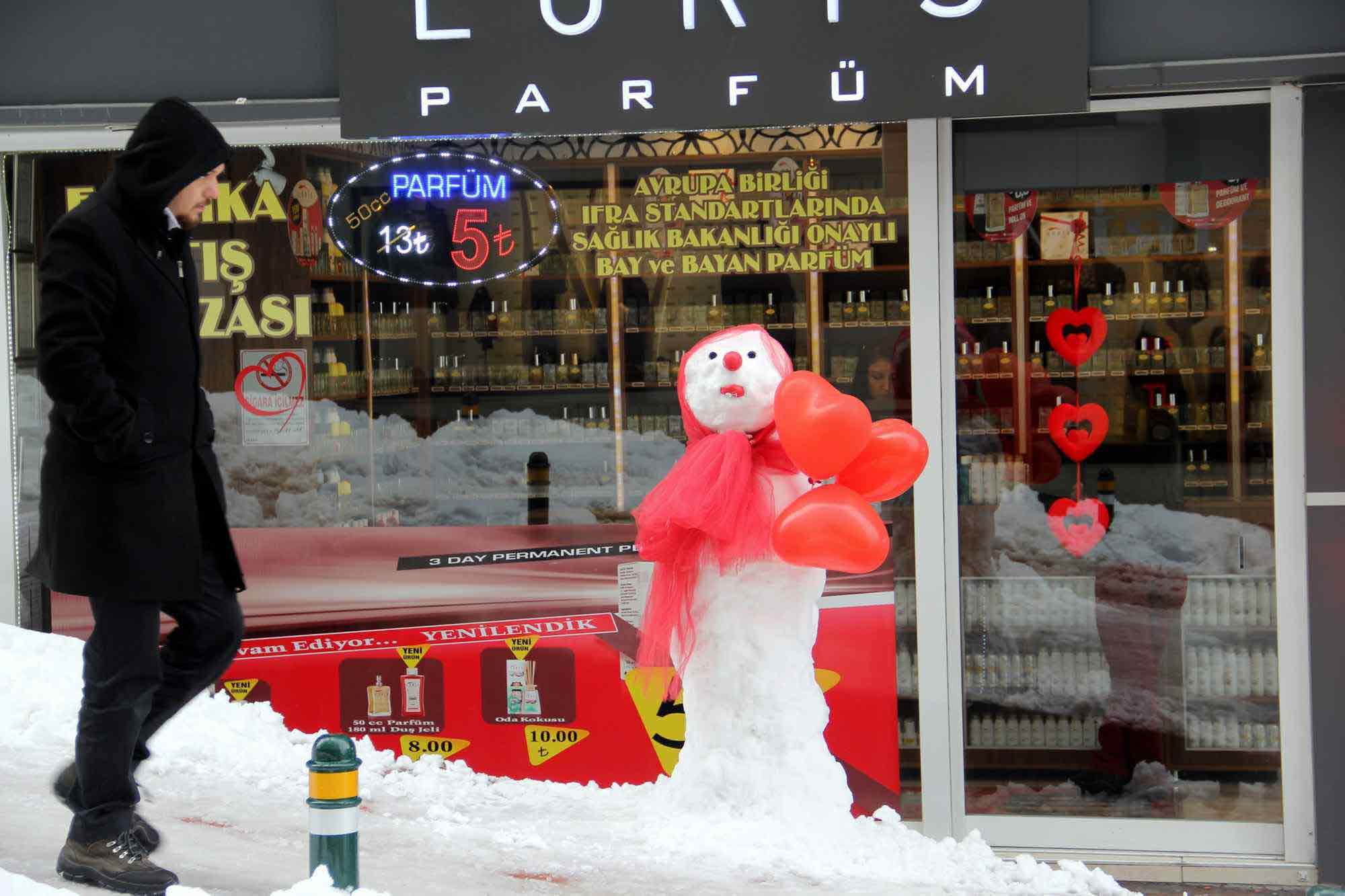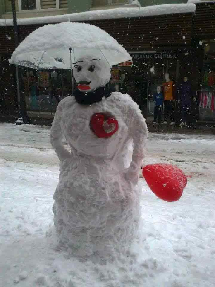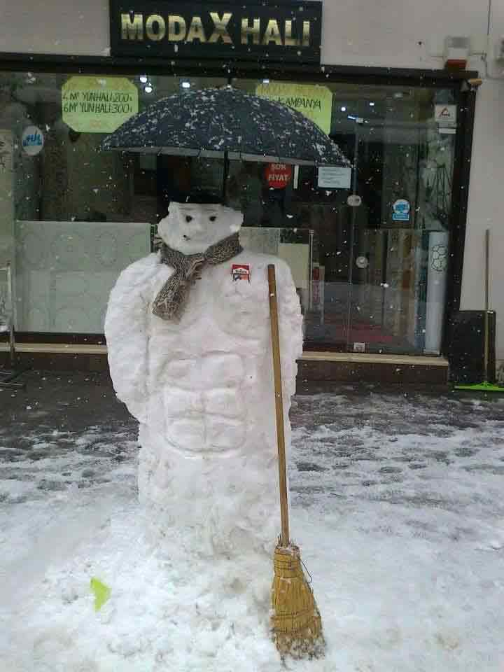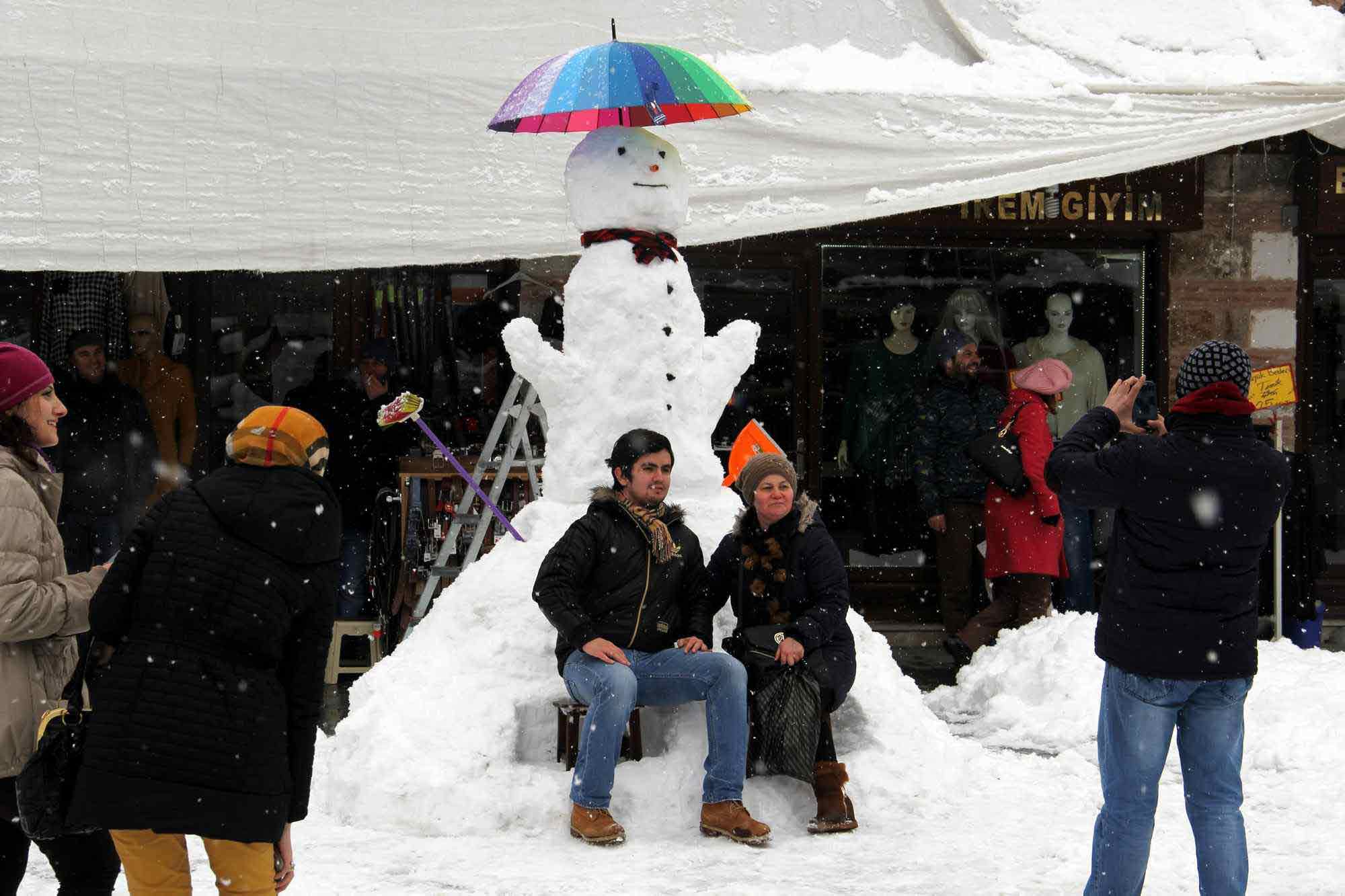Türkiye’yi etkisi altına alan yoğun kar yağışı ortaya renkli görüntüler çıkarıyor. Kapalıçarşı adeta kardan adam sergisine döndü.