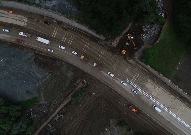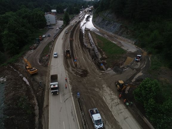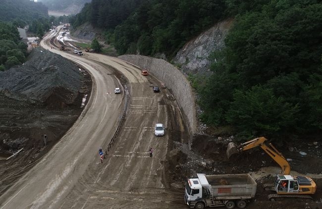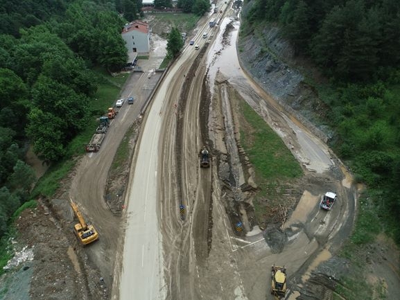 Bursa’da meydana gelen selin neden olduğu zararlar giderilmeye çalışılırken taş, toprak yığını ve heyelan nedeniyle trafiğe kapanan ve dün tek yönlü ulaşıma açılan Bursa-Orhaneli karayolunda temizleme işlemleri devam ediyor. Kaynak: Bursa-Orhaneli karayolunda son durum