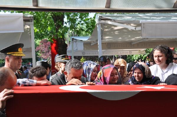 Mardin’in Savur ilçesinde askeri aracın geçişi sırasında yola döşenen el yapımı patlayıcının infilak etmesi sonucu 3 silah arkadaşıyla beraber şehit olan Jandarma Uzman Çavuş Sinan Yaylı, memleketi Bursa’da son yolculuğuna uğurlandı.