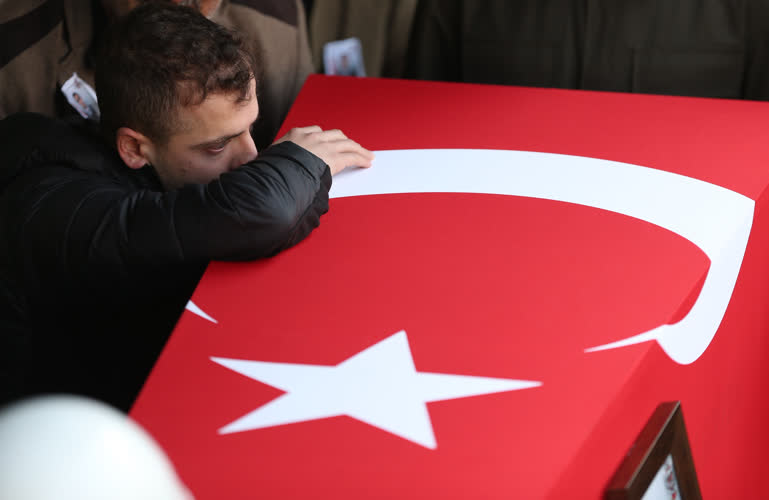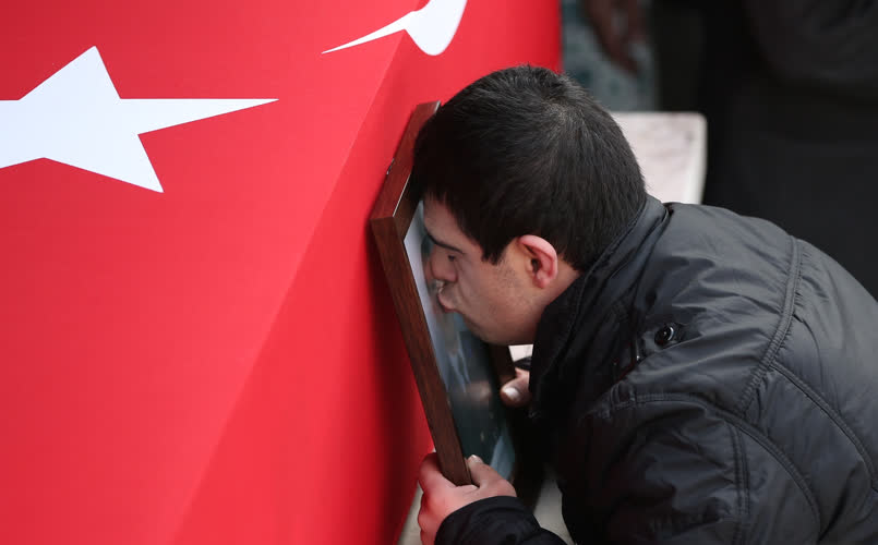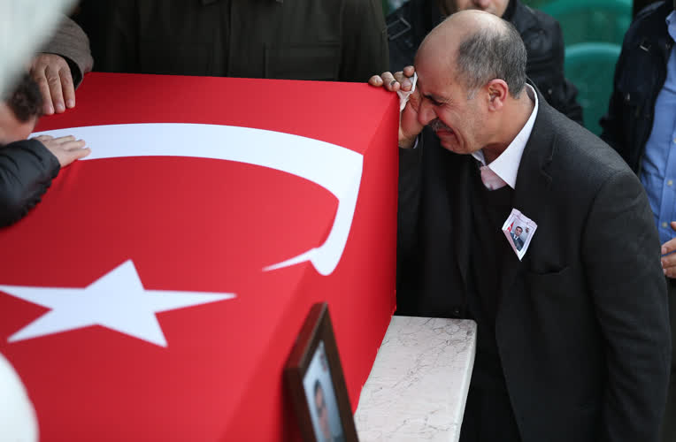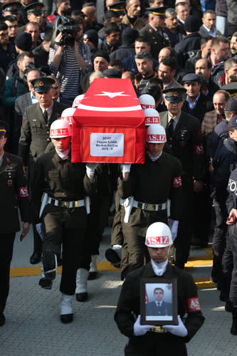 Ankara’daki terör saldırısında şehit olan Muhabere Astsubay Kıdemli Çavuş Feyyaz İlhan’ın cenazesi Bursa’nın Mudanya ilçesine bağlı Güzelyalı Duran Camisine getirildi. Şehit Kıdemli Çavuş İlhan’ın yakınları, naaşı başından ayrılmadı.