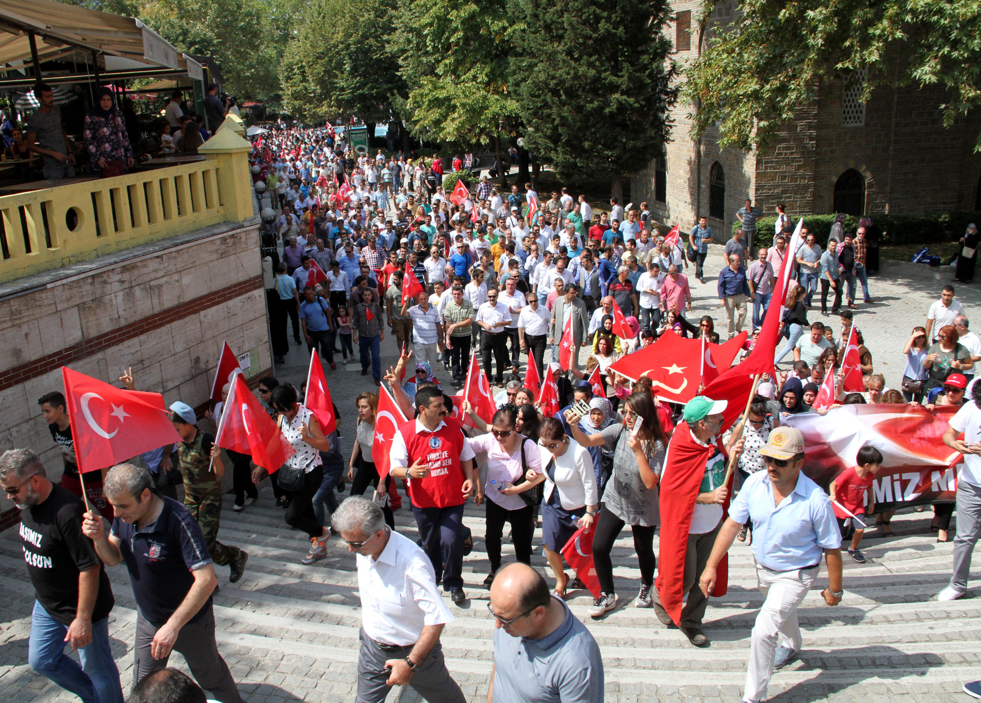Bursa şehitler için ayakta Hakkari’nin Yüksekova ilçesi Dağlıca bölgesinde meydana gelen hain saldırı sonrasında şehit haberleri ile sarsılan Bursa’da vatandaşlar ellerinde bayraklarla sokaklara döküldü. 19 29 39 49 59 69 79 89 99
