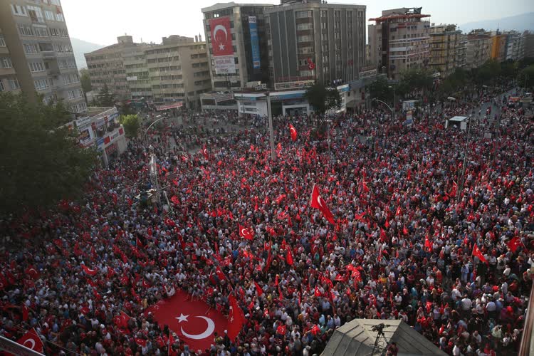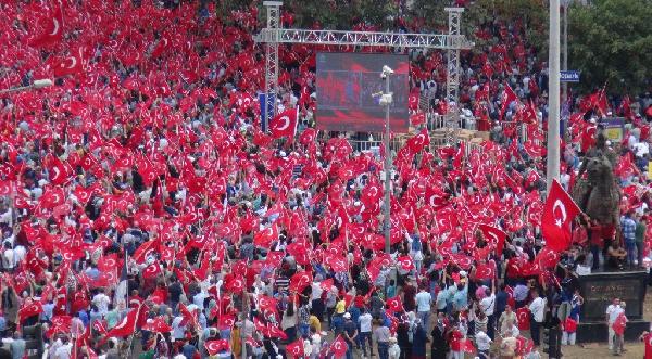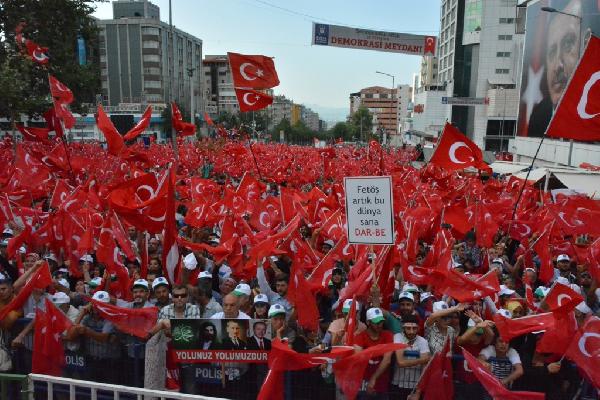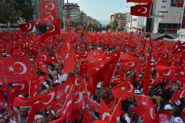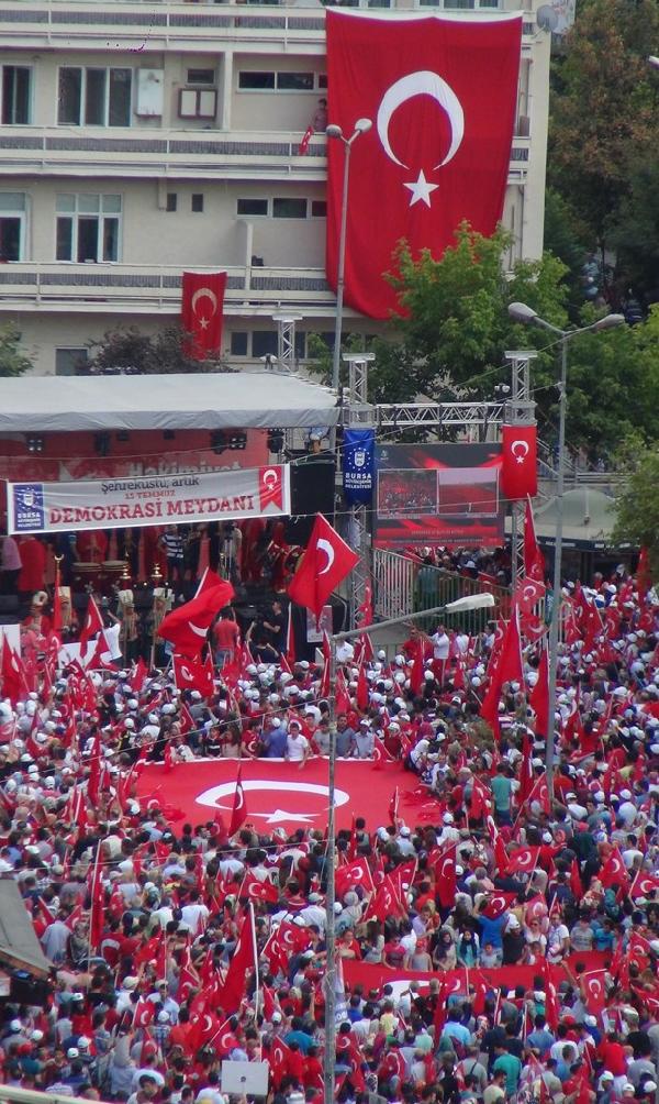 Bursa’da vatandaşlar, Cumhurbaşkanlığı himayesinde, İstanbul Valiliği ve Büyükşehir Belediyesi desteğiyle İstanbul Yenikapı Miting Alanı’nda düzenlenen “Demokrasi ve Şehitler Mitingi”ne destek vermek için 15 Temmuz Demokrasi Meydanı’nda toplandı