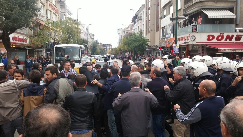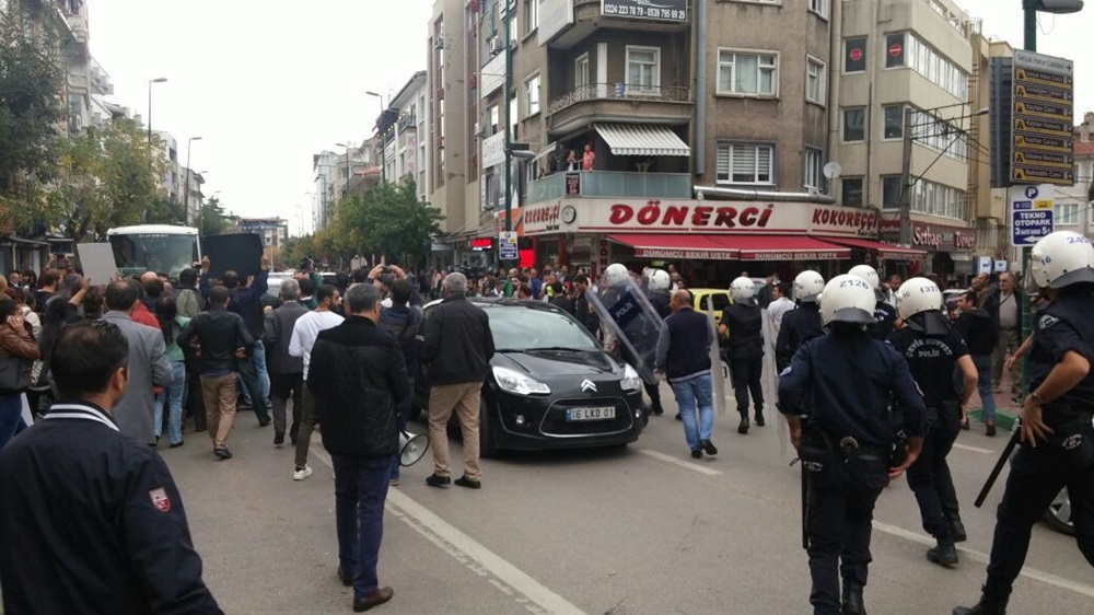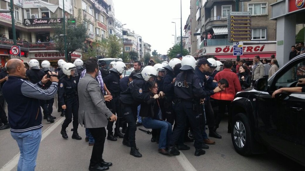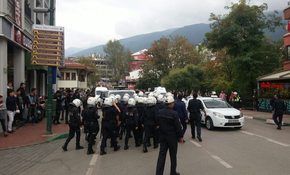 Bursa’da izinsiz gösteriye polis müdahalesi Ankara Garı saldırısının yıl dönümünde Bursa’da izinsiz protesto yürüyüşü düzenlemek isteyen gruba polis ekipleri müdahale etti. Olay sonrası 29 kişi gözaltına alındı. 18 28 38 48 58 68 78 88