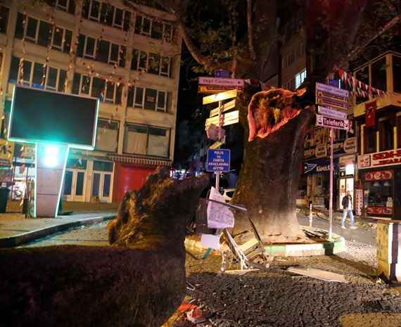Bursa’da lodos dehşeti! Bursa’da etkili olan kuvvetli lodos nedeniyle tarihi çınarın kopan dalı, park halindeki taksinin üzerine düşerek hasara yol açtı. 19 29 39 49 59 69 79 89 99