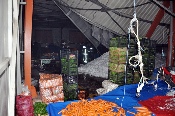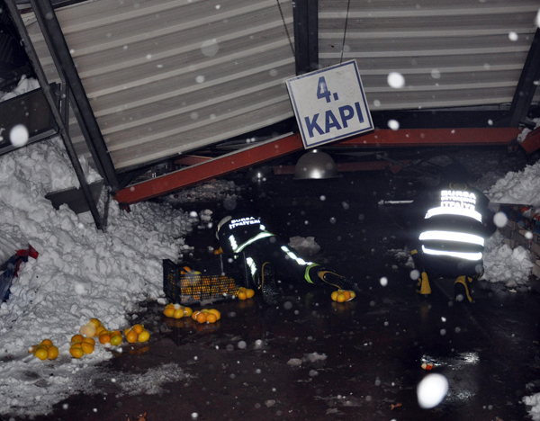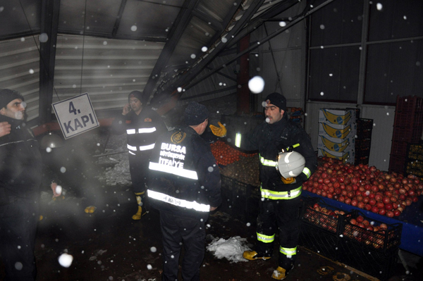 Bursa’da pazaryerinin çatısı çöktü Bursa’nın İnegöl ilçesinde biriken karın ağırlığına dayanamayan İnegöl Merkez Pazaryeri’nin çatısı çöktü. Olayda 1 kişi hafif şekilde yaralanırken, ekipler çöken çatının altında arama yaptı. 19 29 39 49 59 69 79 89 99