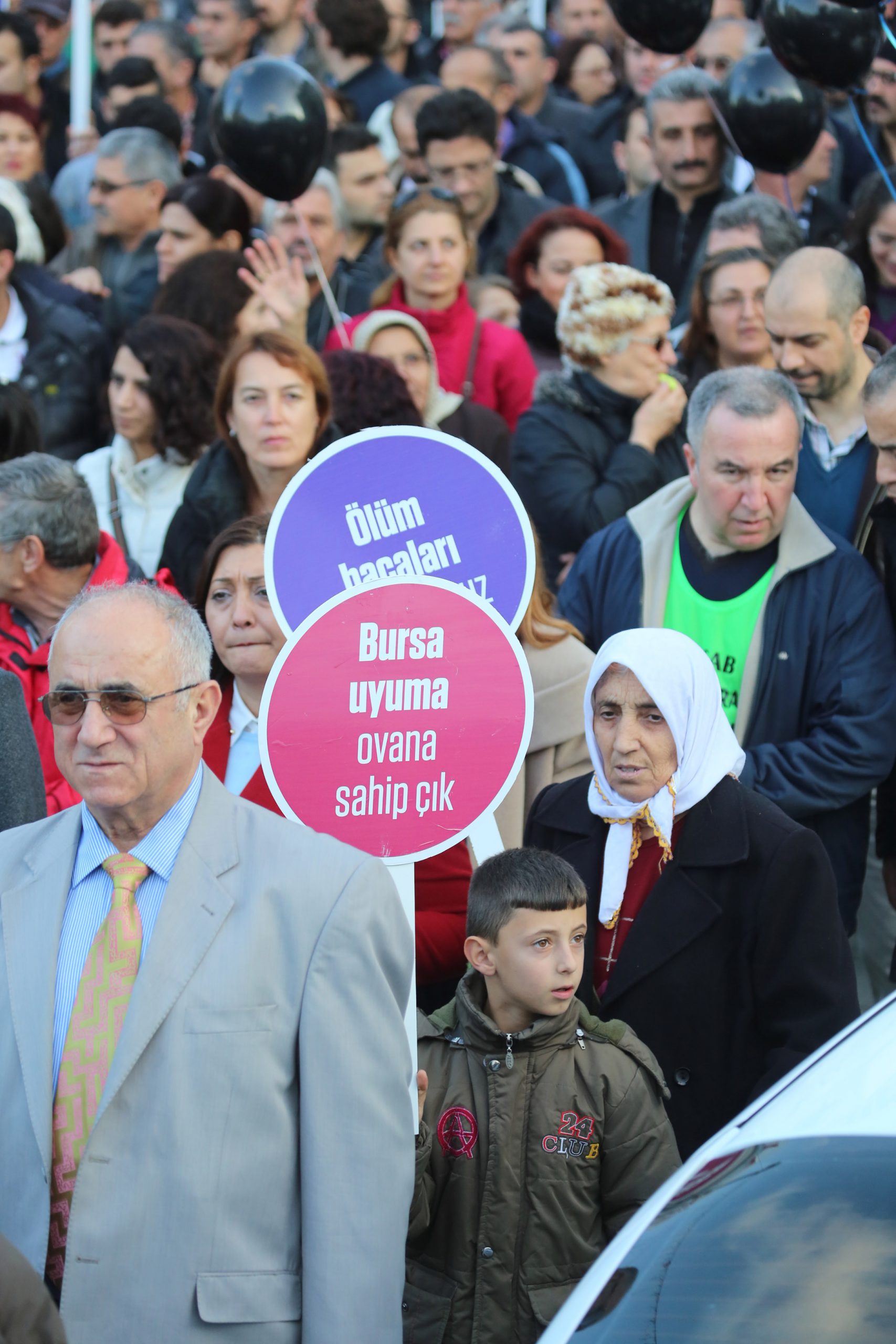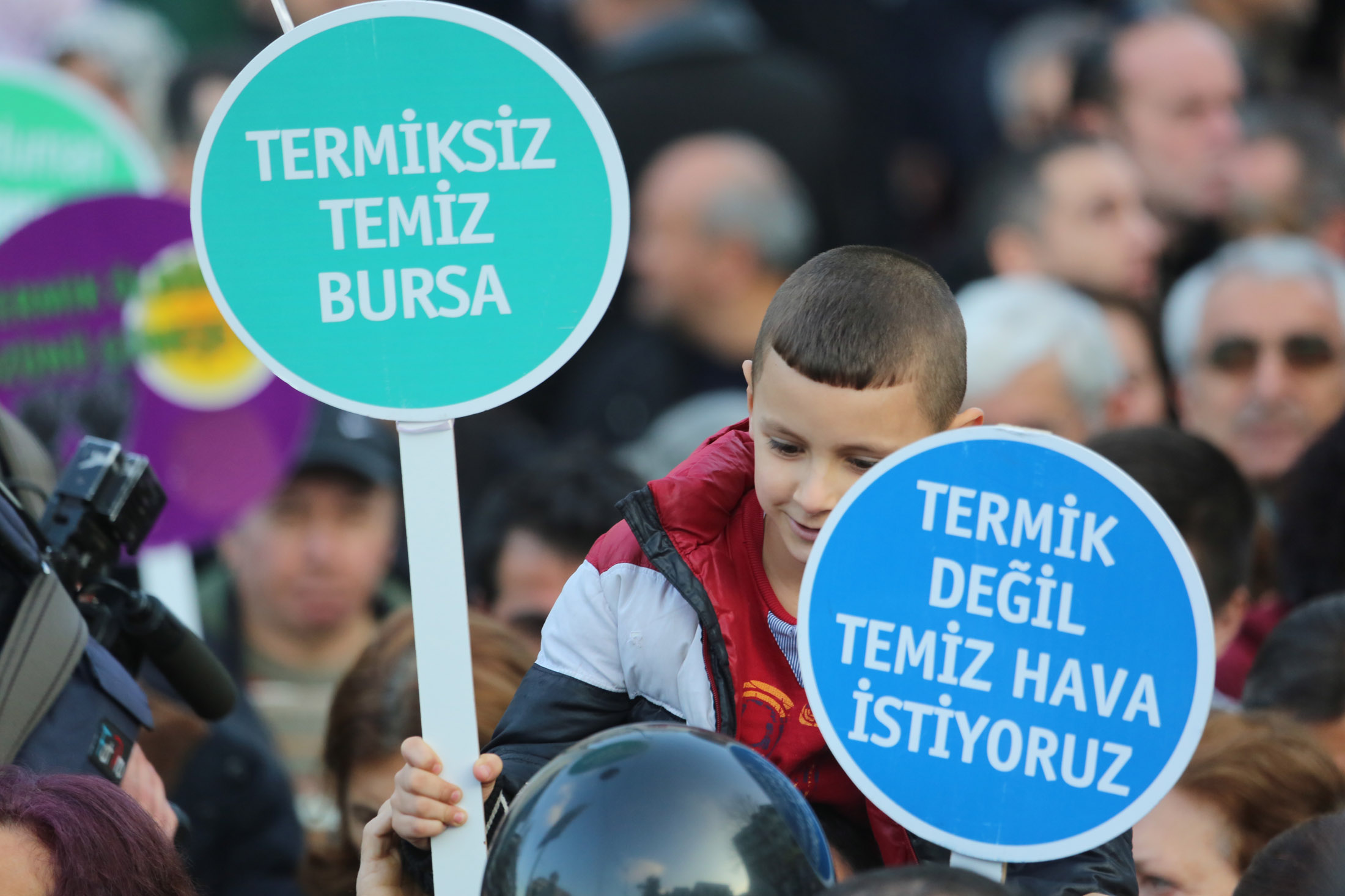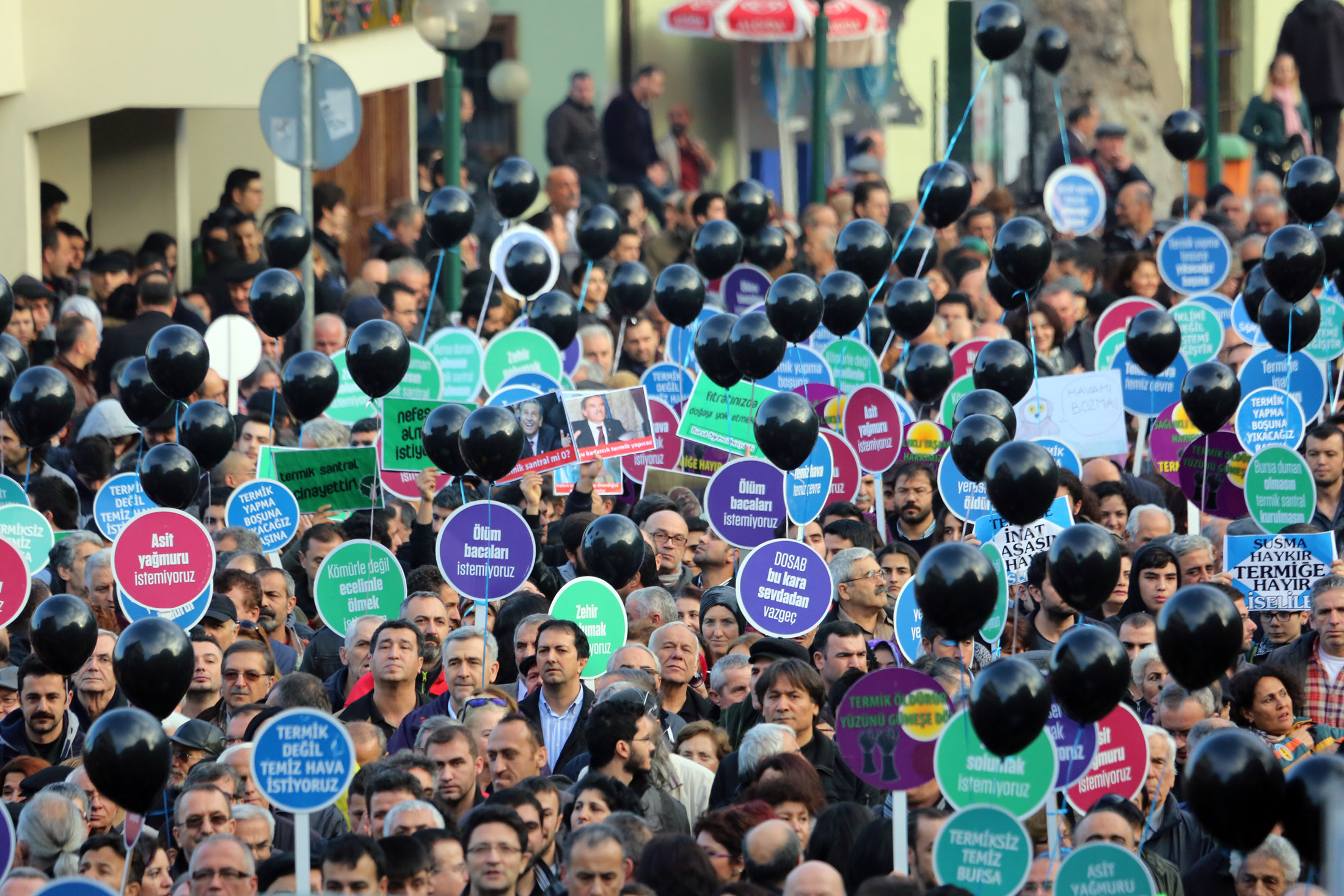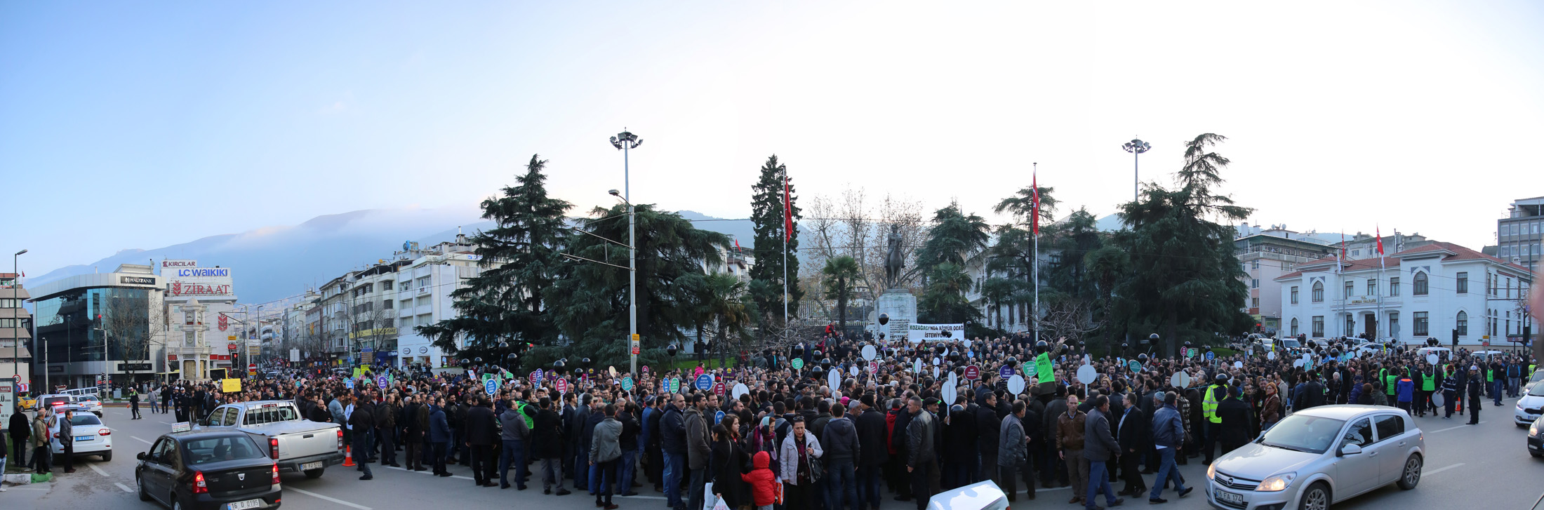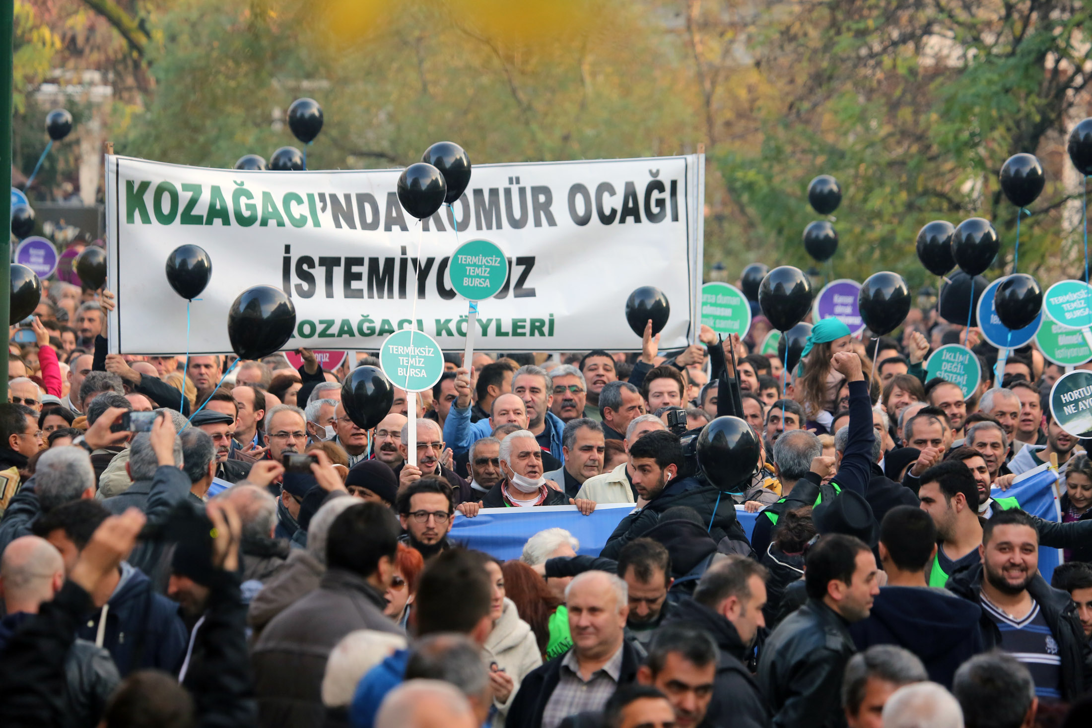 Binlerce Bursalı Setbaşı’dan Atatürk Anıtı’na yürüyerek DOSAB’ın yapmak istediği termik santrale izin vermeyeceğini gösterdi.