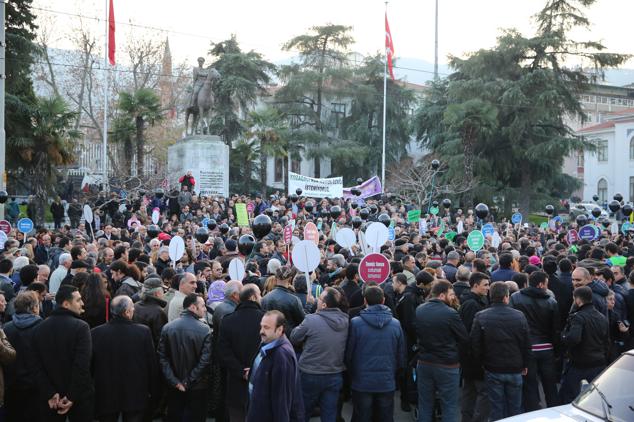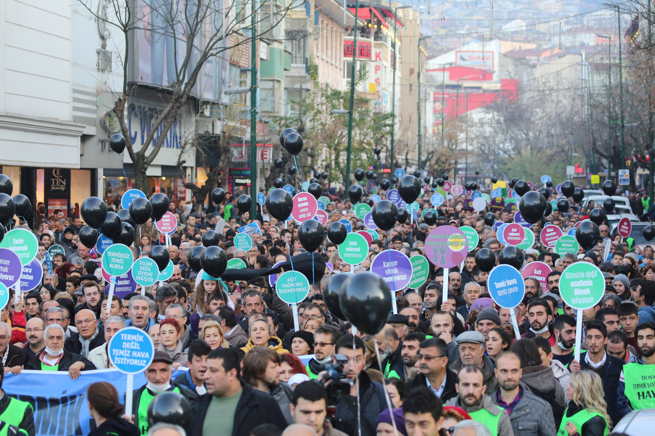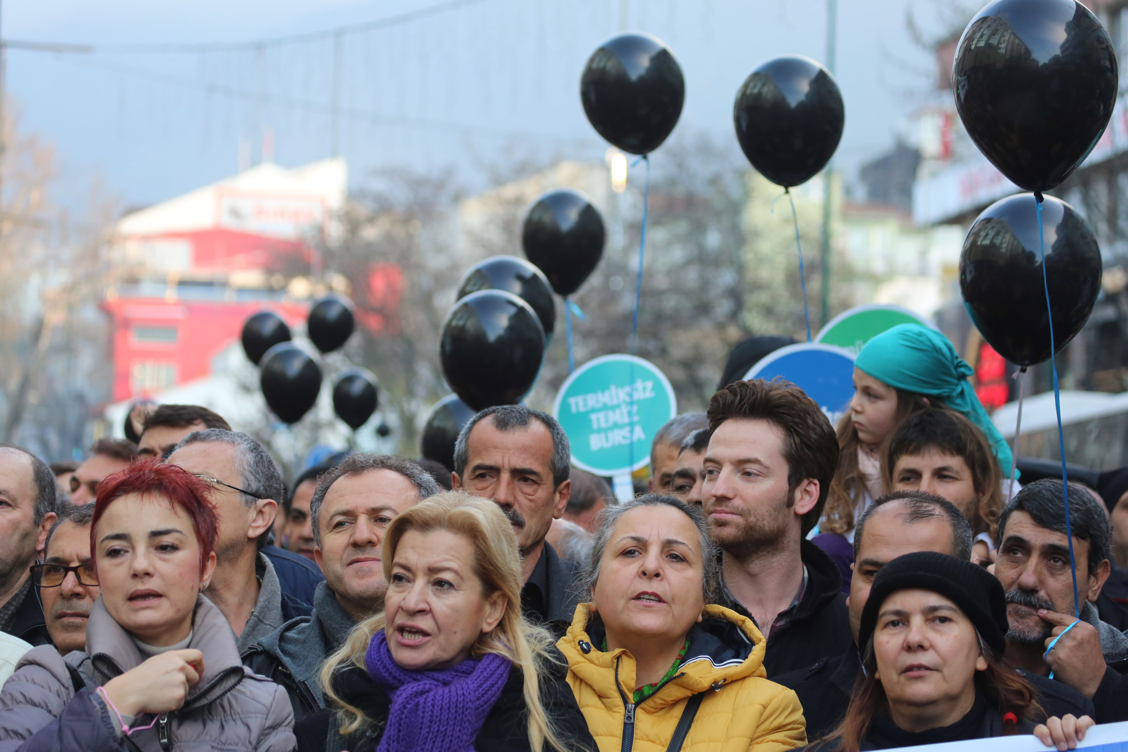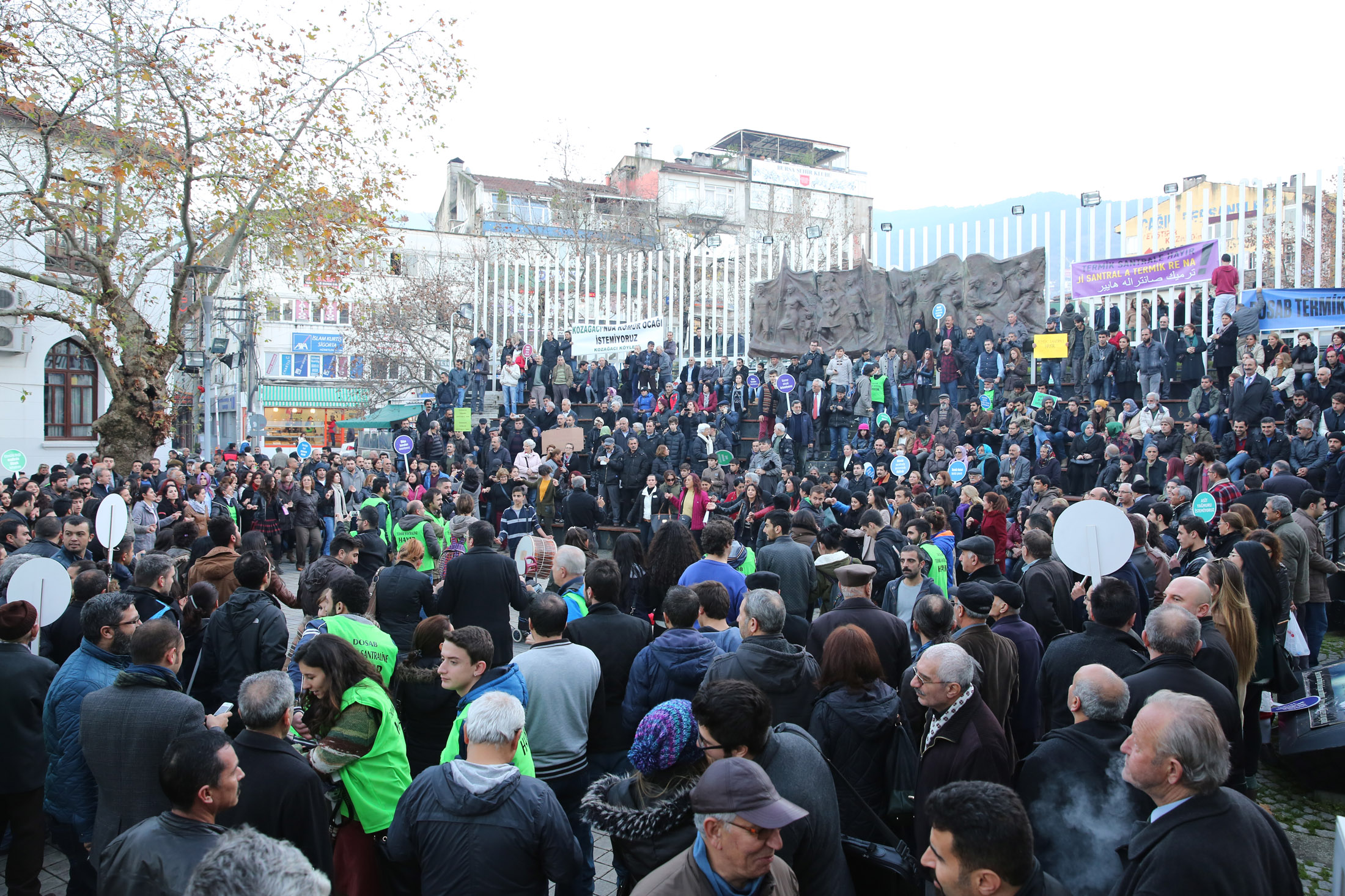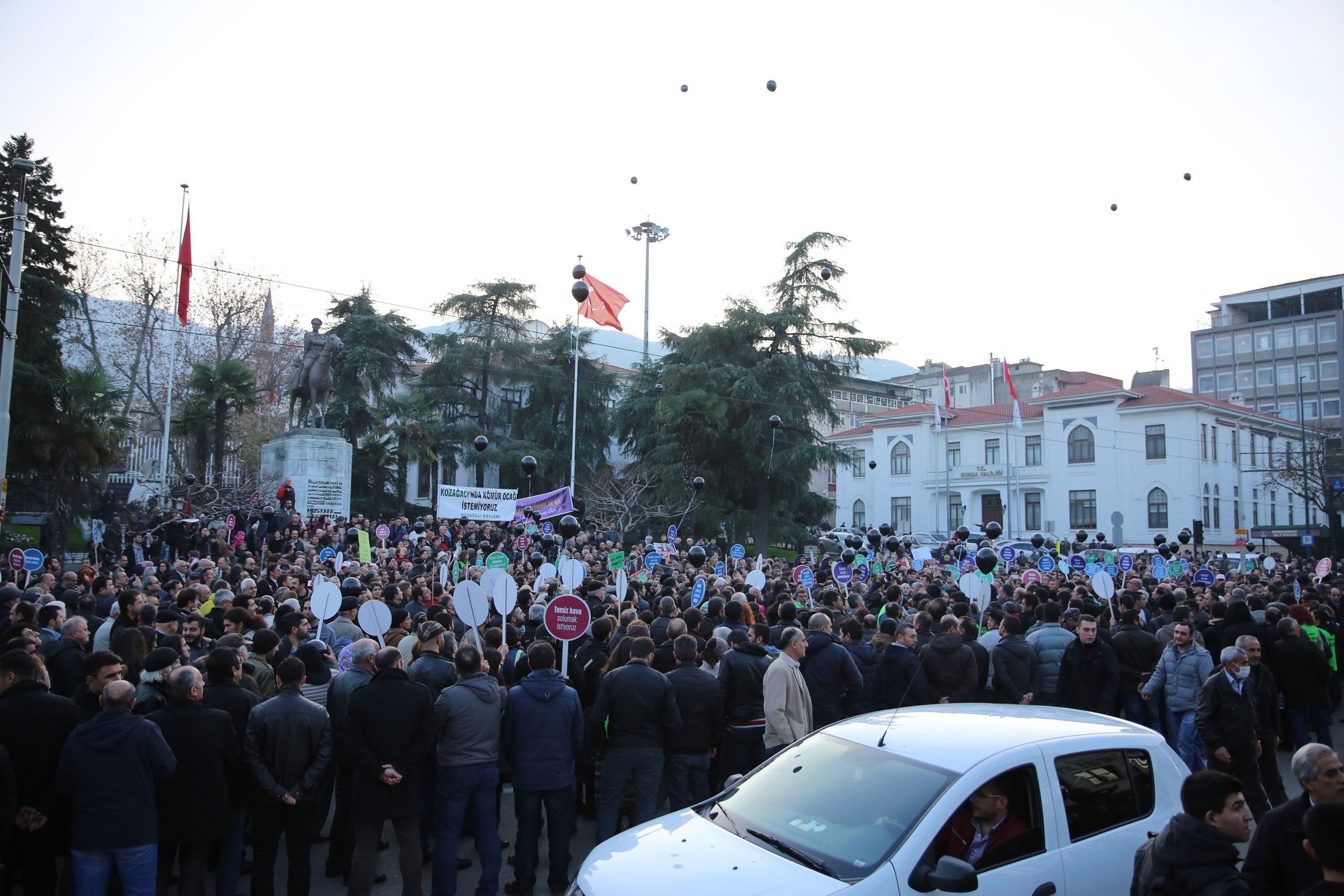 Binlerce Bursalı Setbaşı’dan Atatürk Anıtı’na yürüyerek DOSAB’ın yapmak istediği termik santrale izin vermeyeceğini gösterdi.