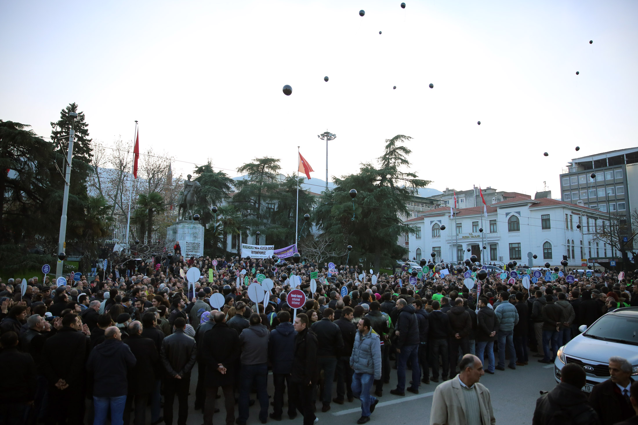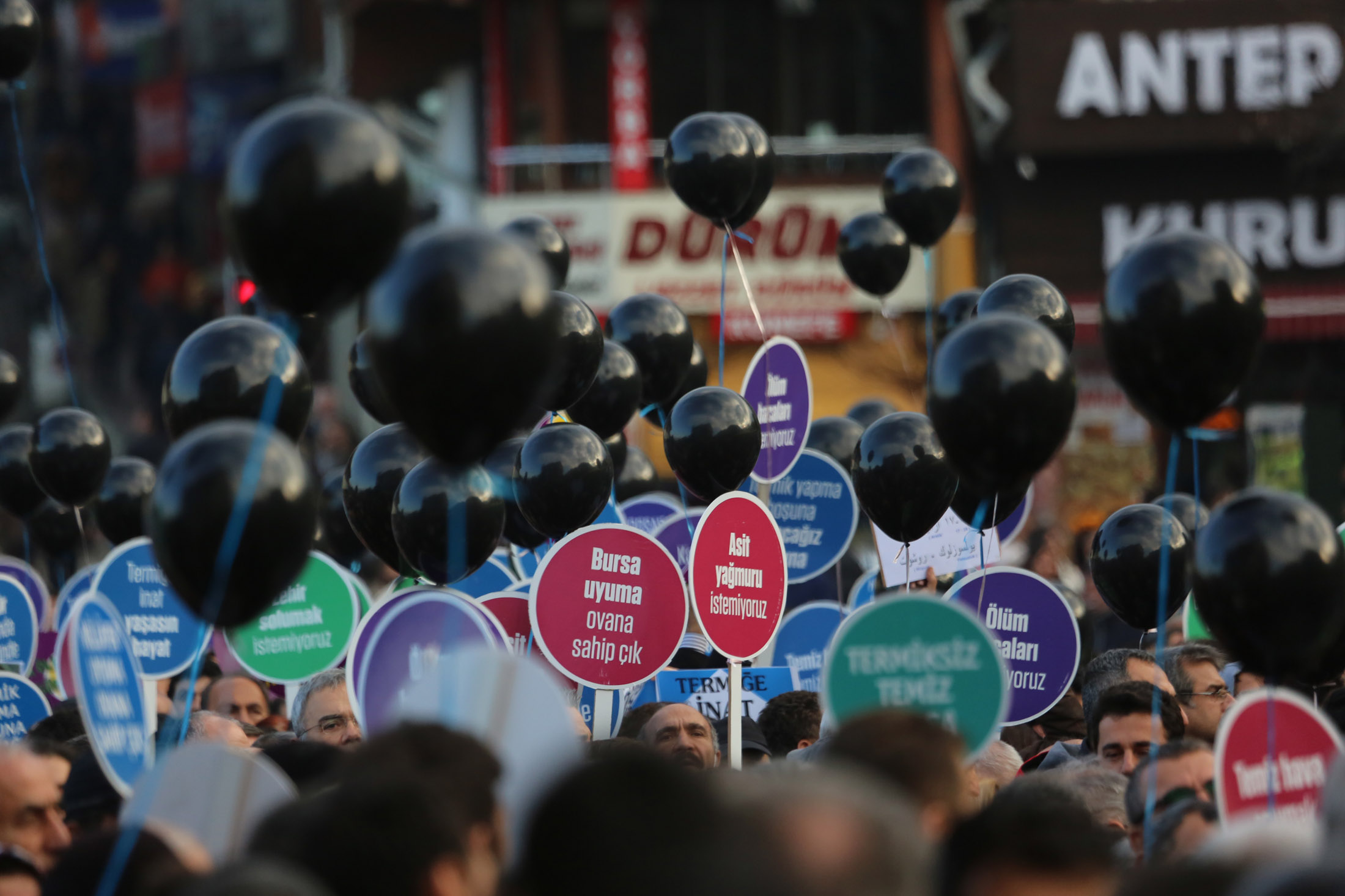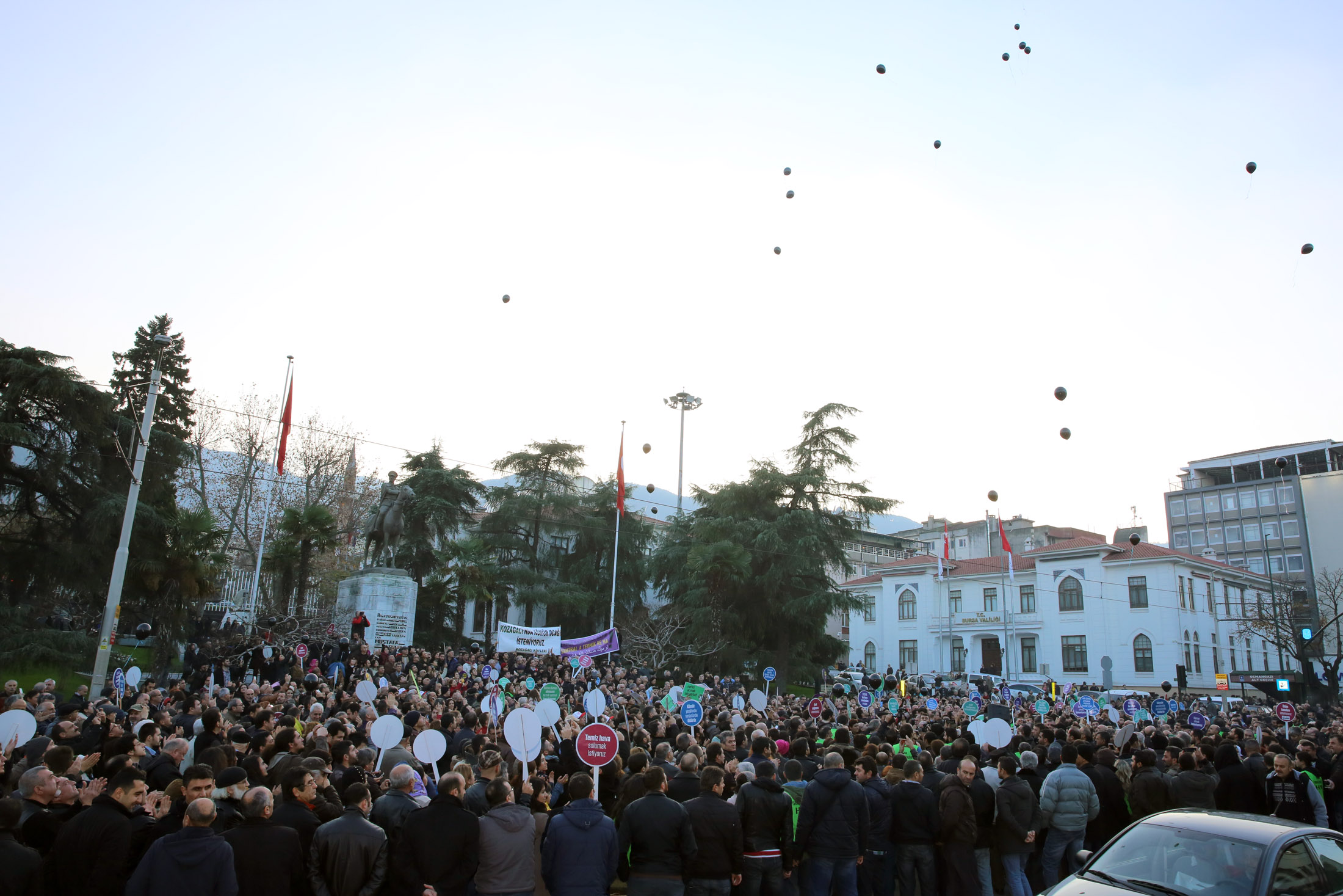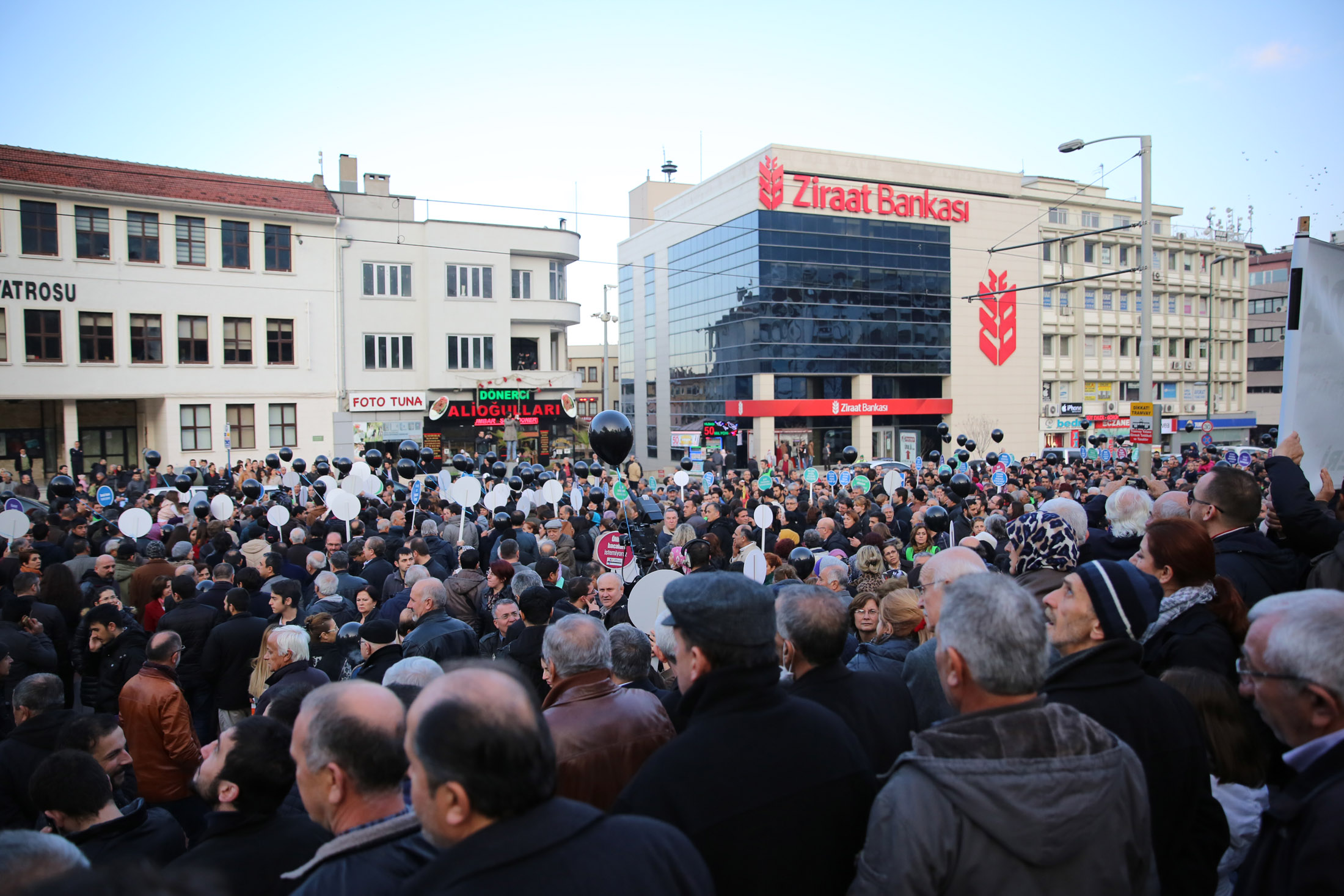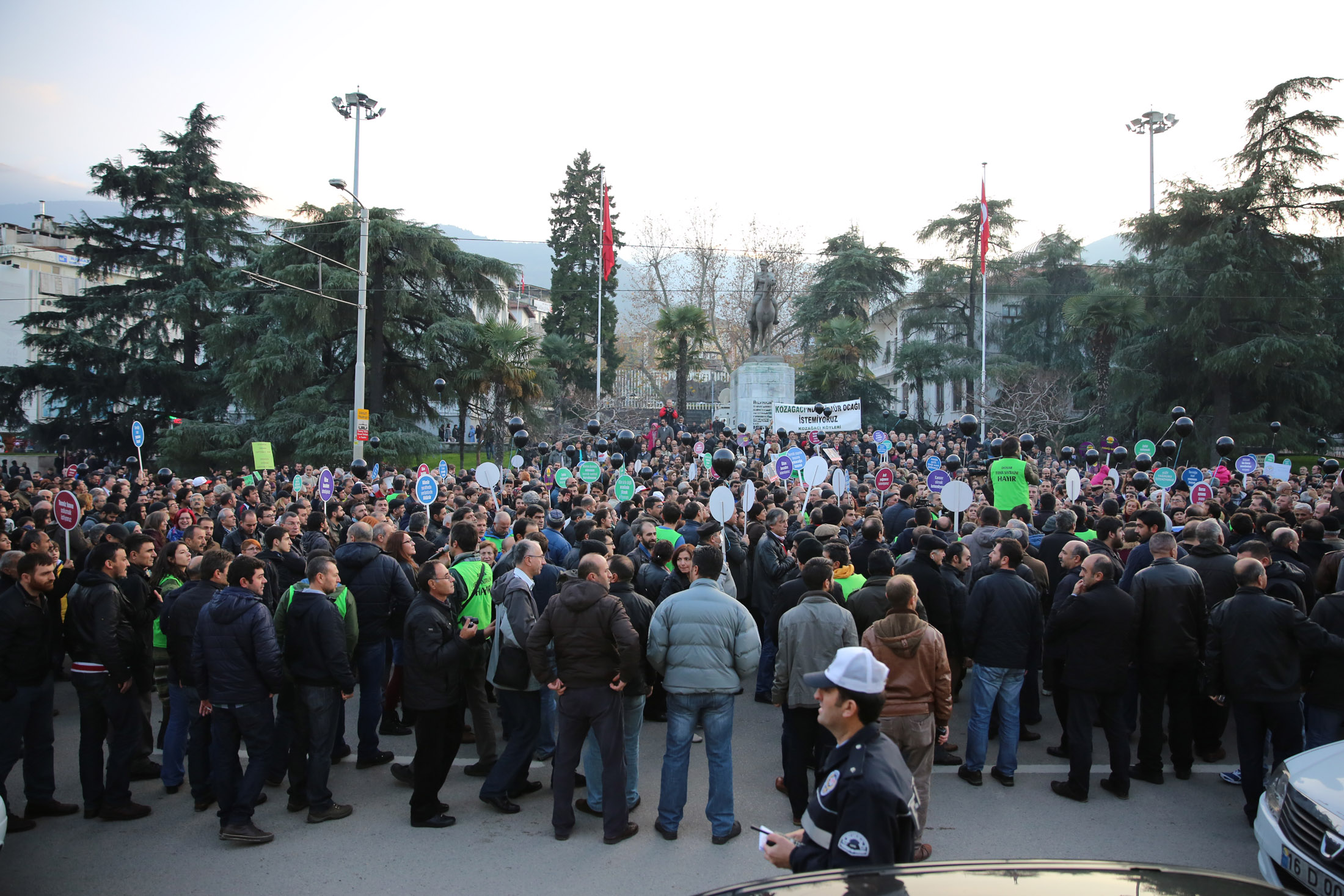 Binlerce Bursalı Setbaşı’dan Atatürk Anıtı’na yürüyerek DOSAB’ın yapmak istediği termik santrale izin vermeyeceğini gösterdi.
