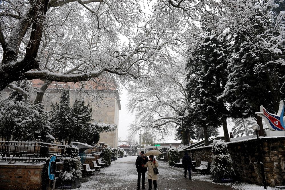 Bursa’nın tarihi mekanları kar altında görenleri büyülüyor.