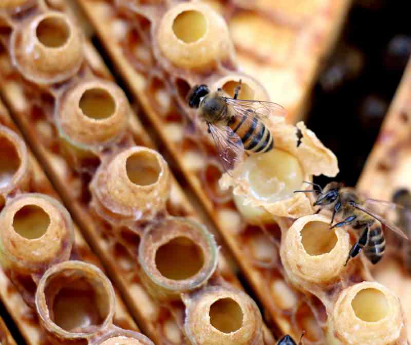 - BİR KOVANDAN 25 GRAM ARI SÜTÜ ÇIKIYOR… Arı sütü üretiminin uzun soluklu bir üretim modeli olduğunu dile getiren Şükrüoğlu, “Arı sütü, işçi arının süt bezlerinden salgılanan baloncuklardan, polen ve bal ile desteklenen ve ana arının doğum sürecinden hayatının sonuna kadar beslendiği bir sıvıdır. Larvaların ilk dönem gelişmesi için tek gıda maddesidir. Doğal yolla arı sütü üretimi nisan-eylül ayları arasında yapılır. Yine bu teknikle bir kovandan 20-25 g arı sütü elde edilebilir” dedi.