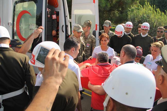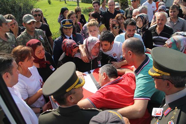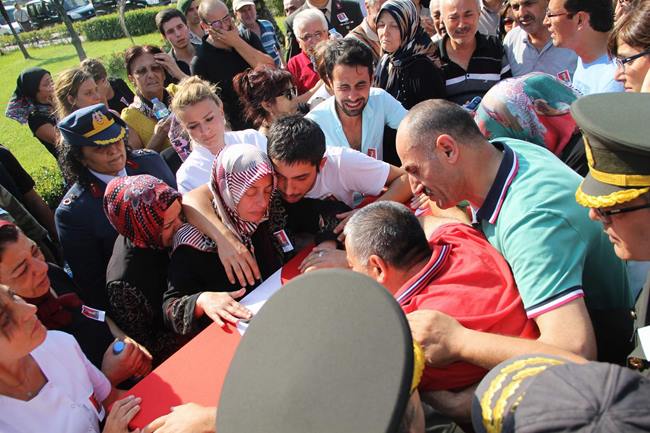 Siirt’te mayınlı tuzak sonucu şehit olan Bursalı jandarma çavuş Bahadır Aydın’ın cenazesi Bursa’ya getirildi. Şehidin annesi Emine ve babası Muhsin Aydın çocuklarının bayrağa sarılı tabutuna sarılıp gözyaşı döktüler. Şehidin cenazesi Türk Bayraklı 300 ara