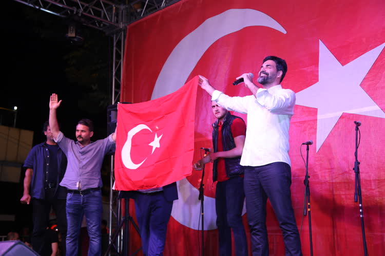 Bursalıların ‘demokrasi nöbeti’ devam ediyor Bursa’da, Fetullahçı Terör Örgütü’nün (FETÖ) darbe girişimine tepki gösteren vatandaşların “demokrasi nöbeti” devam ediyor. Gecenin konuğu olarak sahne alan sanatçı Uğur Işılak, binlerce kişiyi coşturdu. 110 210 310 410 510 610 710 810 910 1010